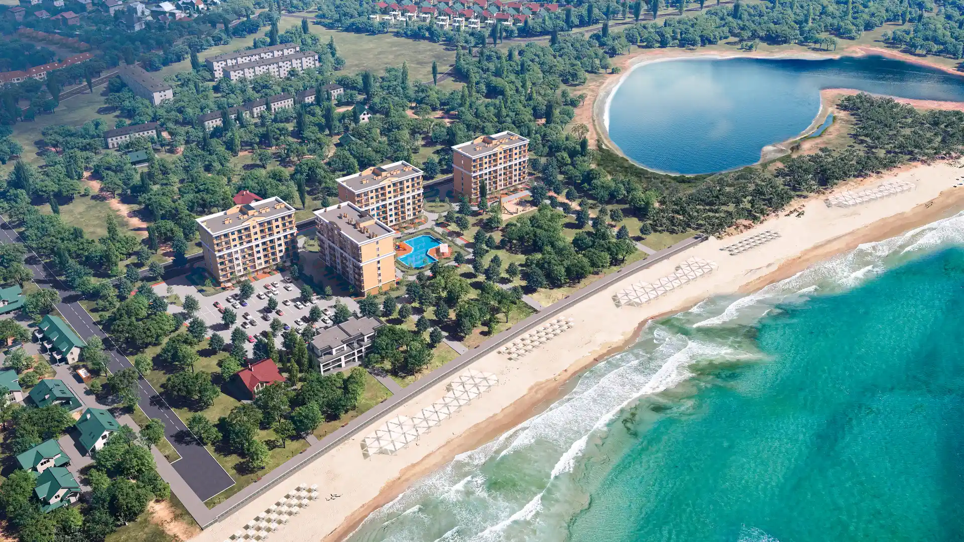 ЖК «Новая Керкинитида» — это роскошный комплекс апартаментов комфорт-класса, расположенный на первой береговой линии Черного моря в поселке Заозёрное под Евпаторией. Выполнен в стилистике древнегреческой архитектуры и предлагает жизнь в единстве с природой при сохранении всех городских удобств. Ключевым преимуществом является исключительная близость к морю — всего 3 минуты пешком до собственного пляжа и таких же 3 минуты до знаменитого лечебного Мойнакского озера.
