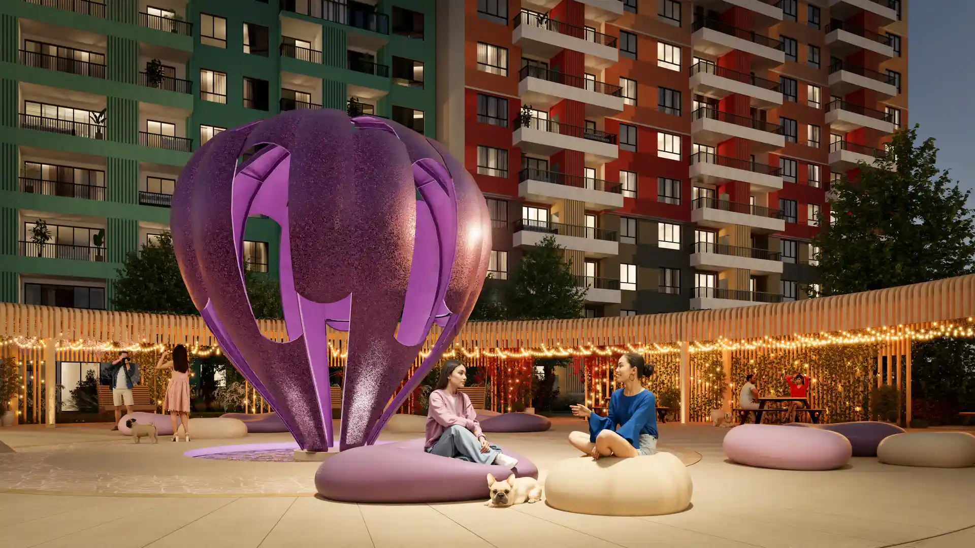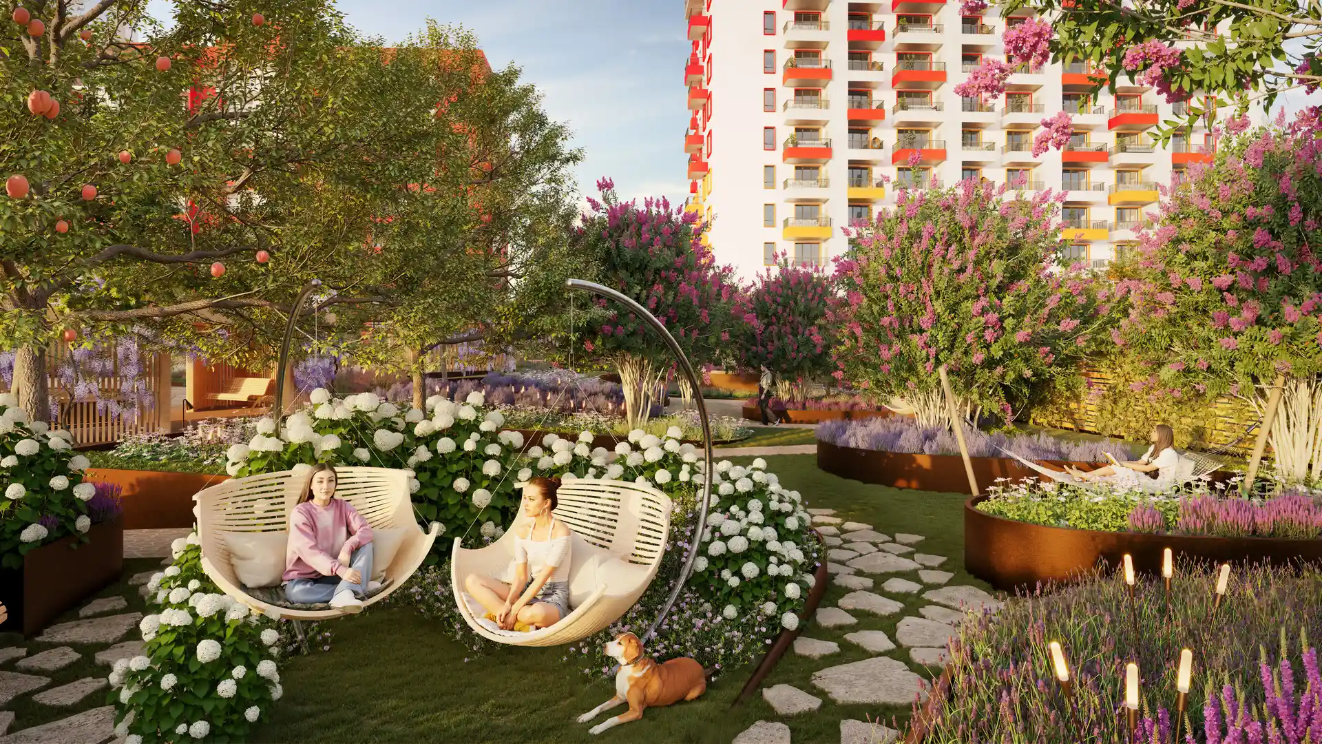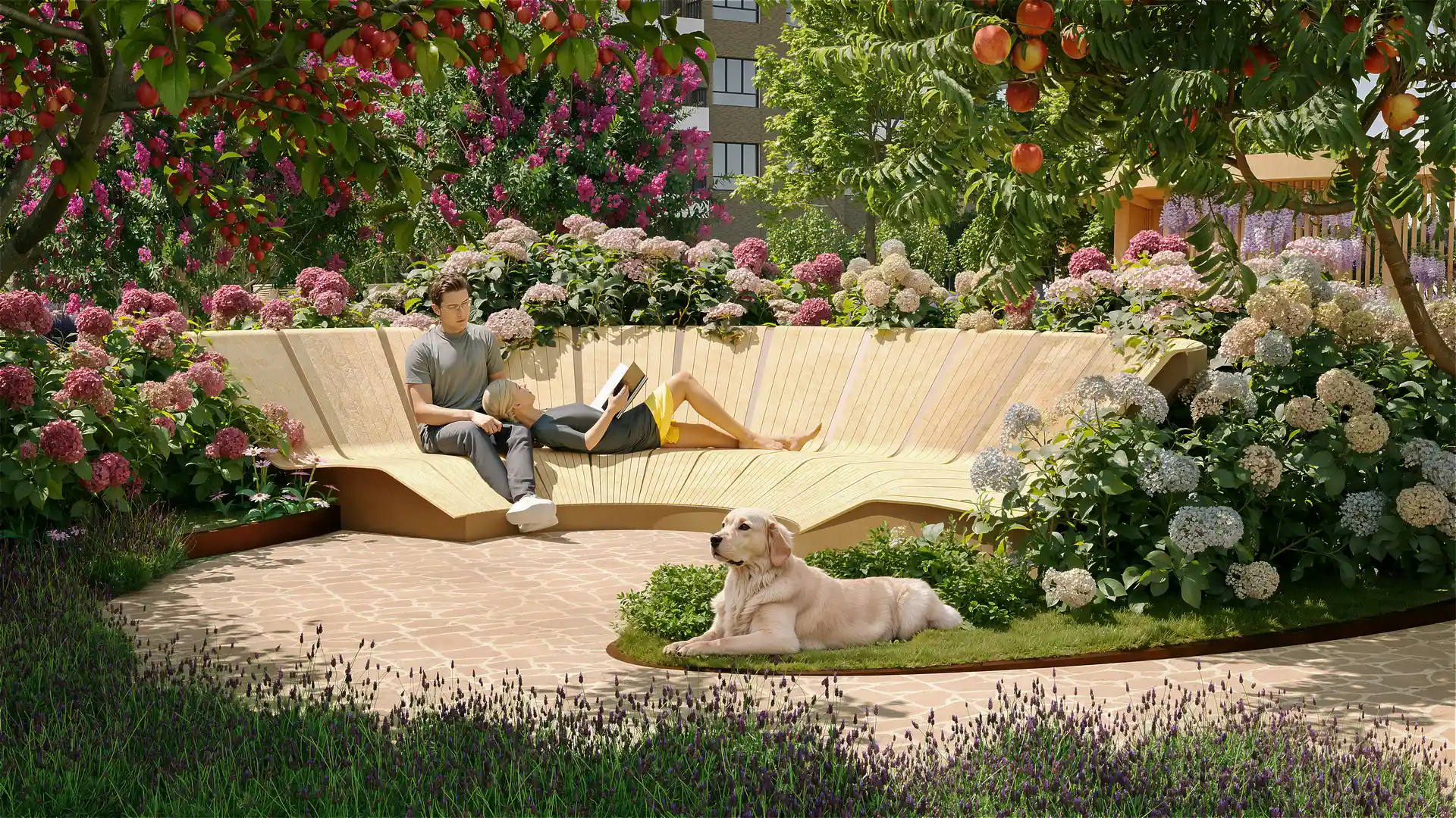 Внутреннее пространство комплекса тщательно продумано для комфортной жизни. На территории обустроены дизайнерское лобби, зоны для отдыха и спорта, мангальные площадки с беседками, детские городки и даже дворовые теплицы. Безопасность обеспечивается видеонаблюдением по периметру и во дворе, контролируемым доступом и современной системой оповещения.