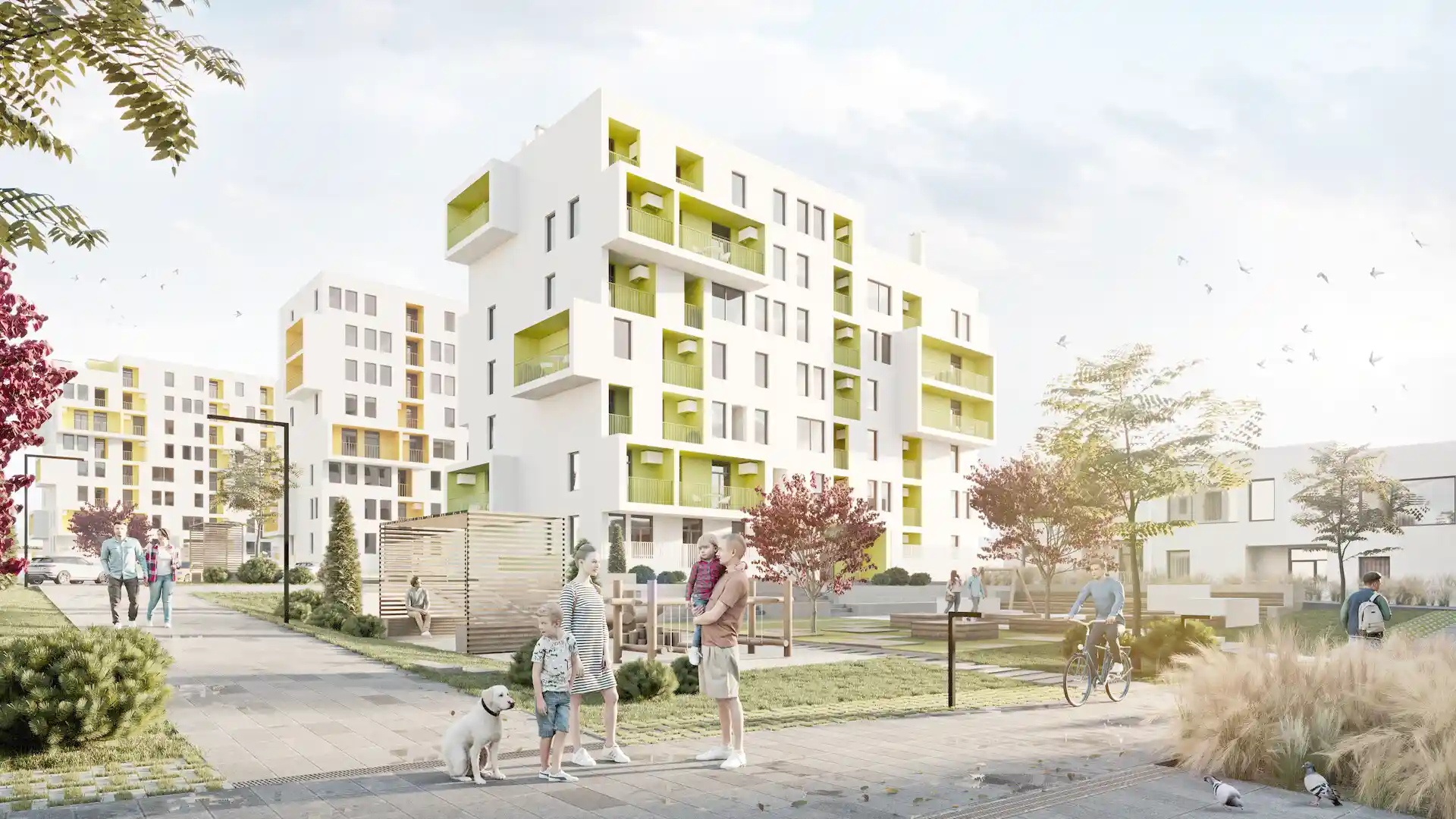 Комплекс включает в себя восемь монолитно-кирпичных корпусов, высота которых варьируется от 2 до 9 этажей. Высота потолков в квартирах составляет 2,85 м, что создает комфортное пространство для проживания. Все квартиры будут предложены без отделки, что позволит будущим владельцам самостоятельно выбрать стиль оформления своих жилья.