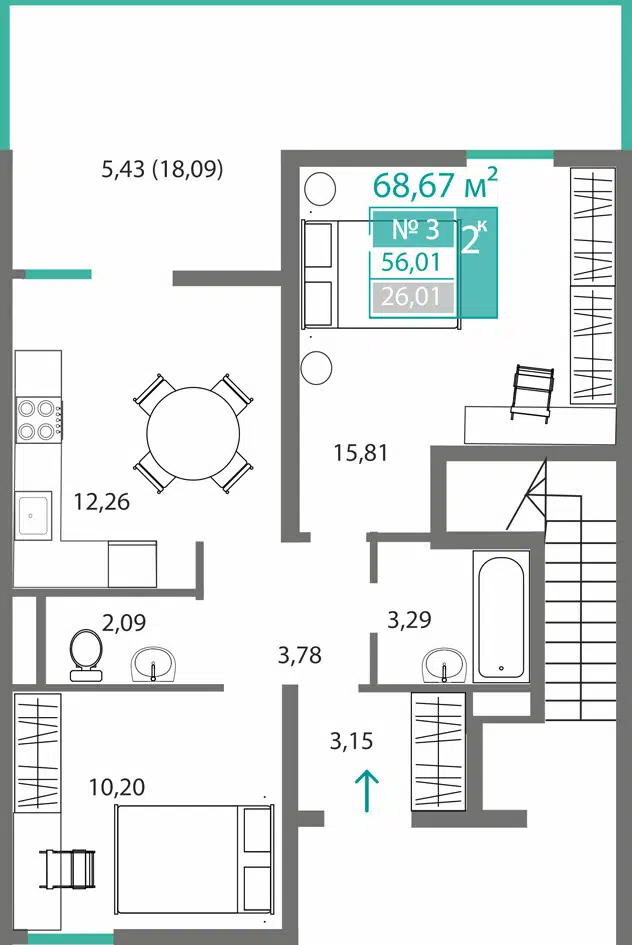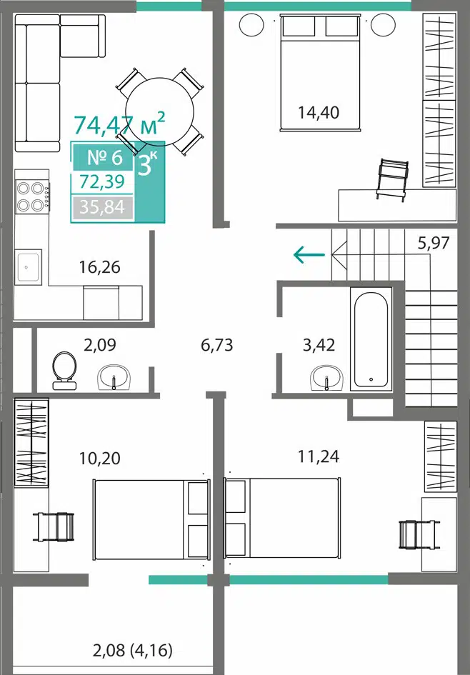 56.01 - 72.39 м²