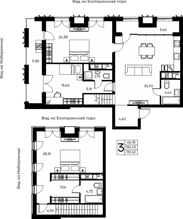 Особое впечатление производит вариативность высоты потолков — от 2,96 до 4,16 м. Такие параметры не только визуально расширяют пространство, но и открывают широкие возможности для реализации смелых дизайнерских решений: например, можно предусмотреть антресоли, нестандартные системы освещения или многоуровневые конструкции.