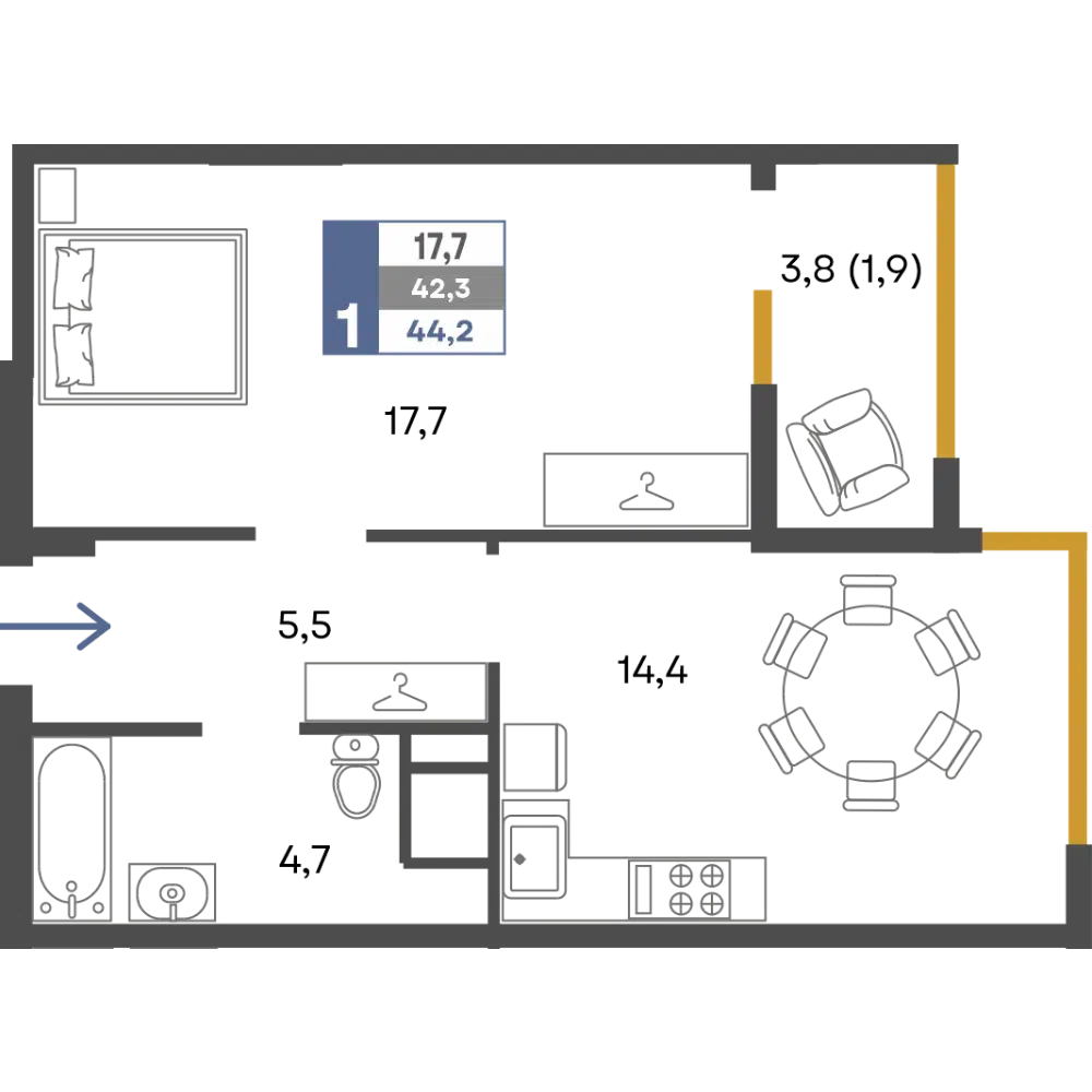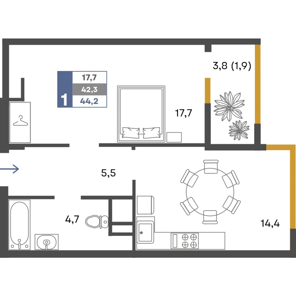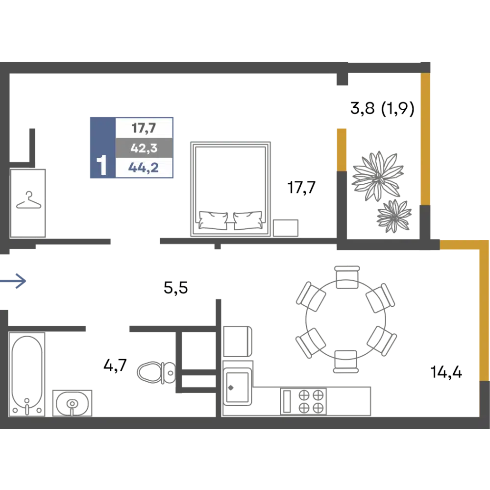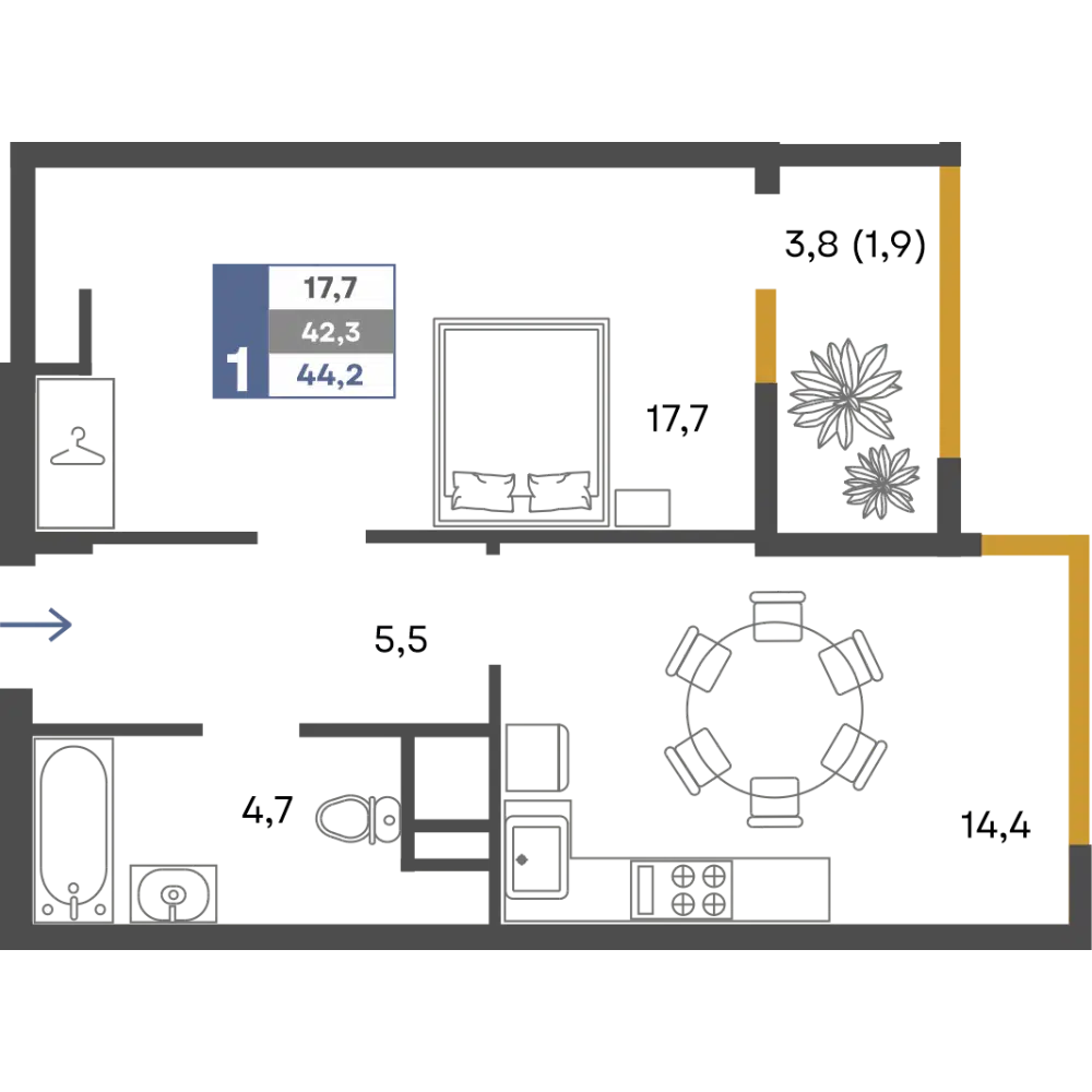 39.3 - 82 м²