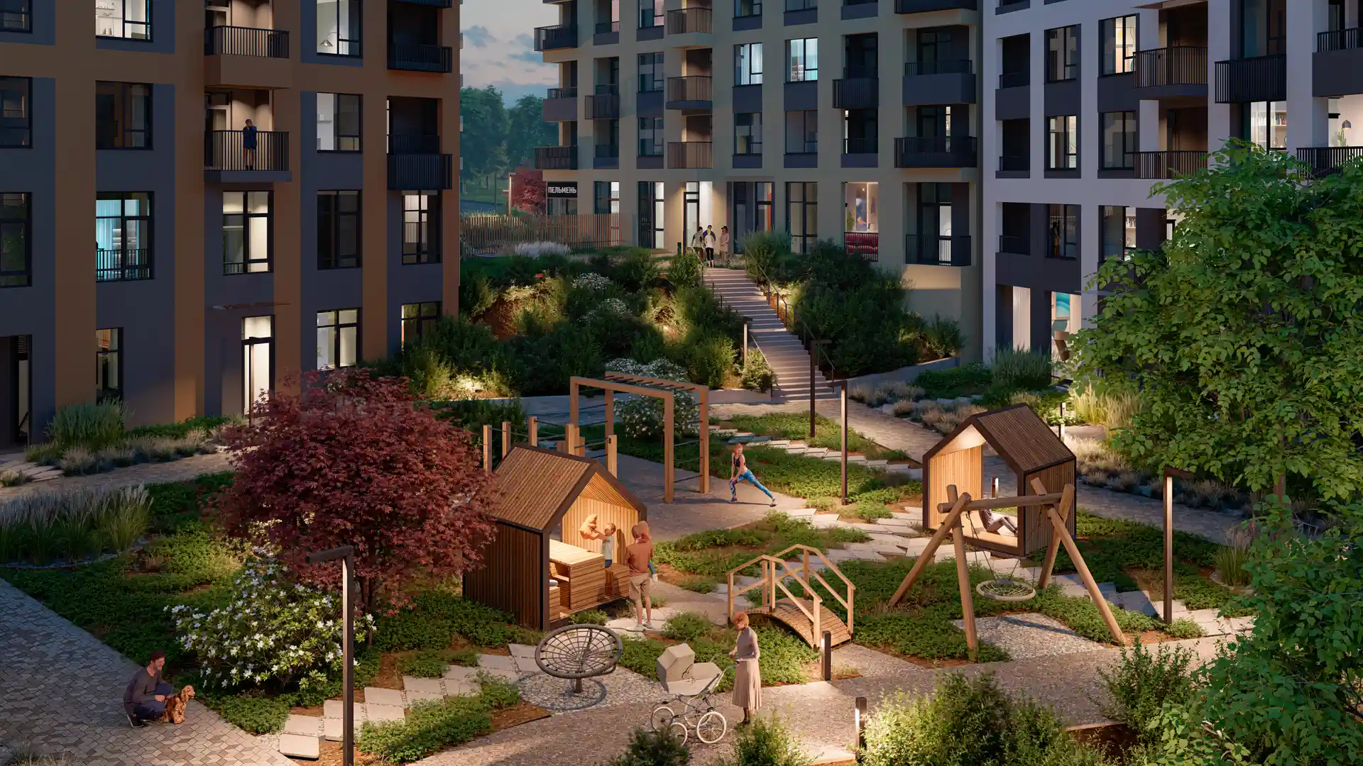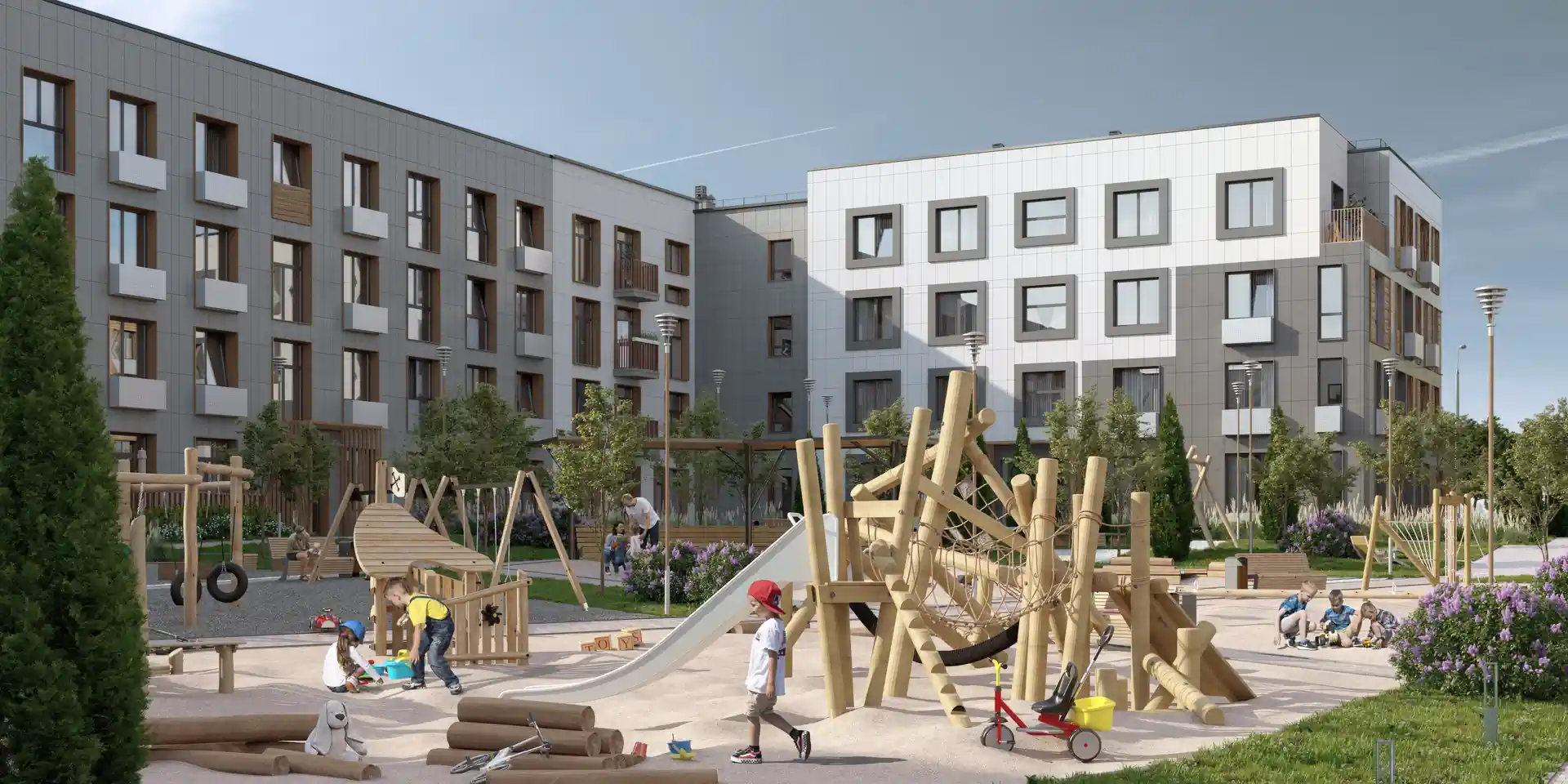 На территории жилого комплекса предусмотрены различные объекты, отвечающие современным требованиям. Здесь планируются детские и спортивные площадки, а также пространства для отдыха. Для удобства автолюбителей будет создана парковка, включая мест для гостей.