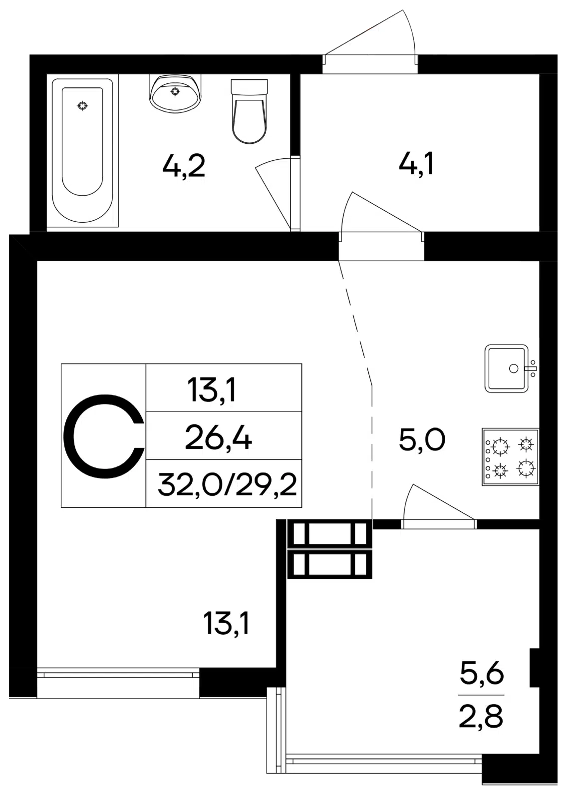 31.3 - 66.5 м²