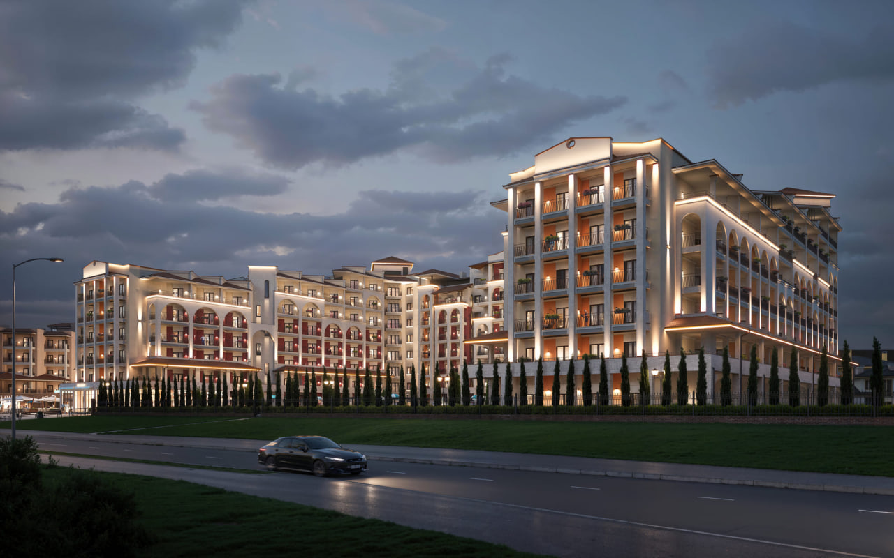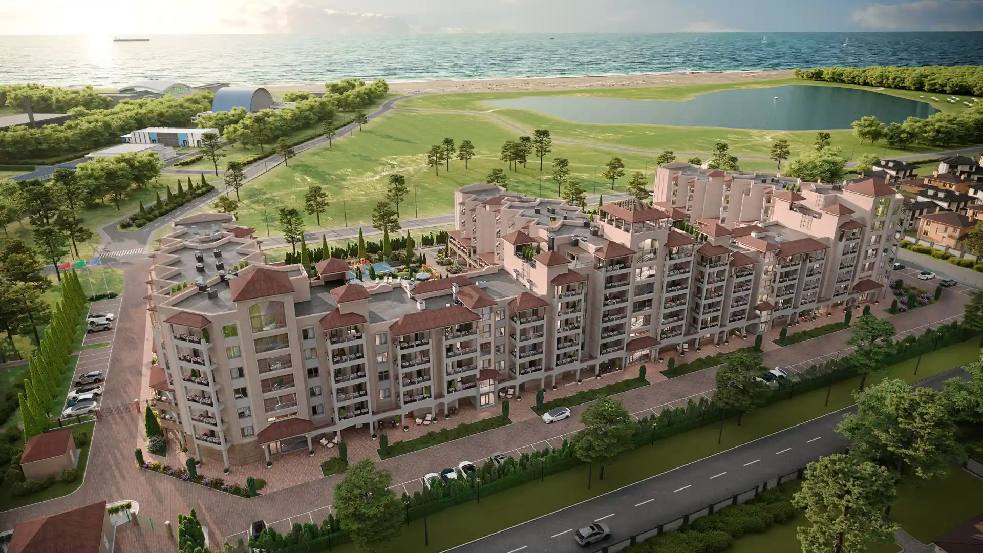 Проект реализуется в несколько этапов и включает в себя 12 жилых домов, 2 апартаментных комплекса, многоуровневые паркинги и торговые галереи. Для будущих жителей создается вся необходимая инфраструктура: современная школа «XXI века», детский сад, спортивный комплекс, благоустроенная набережная и детские игровые зоны. Квартиры сдаются в предчистовой отделке, и каждая из них имеет вид на море.
