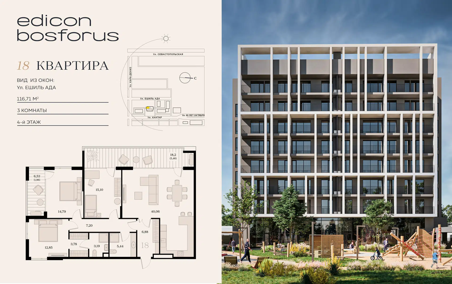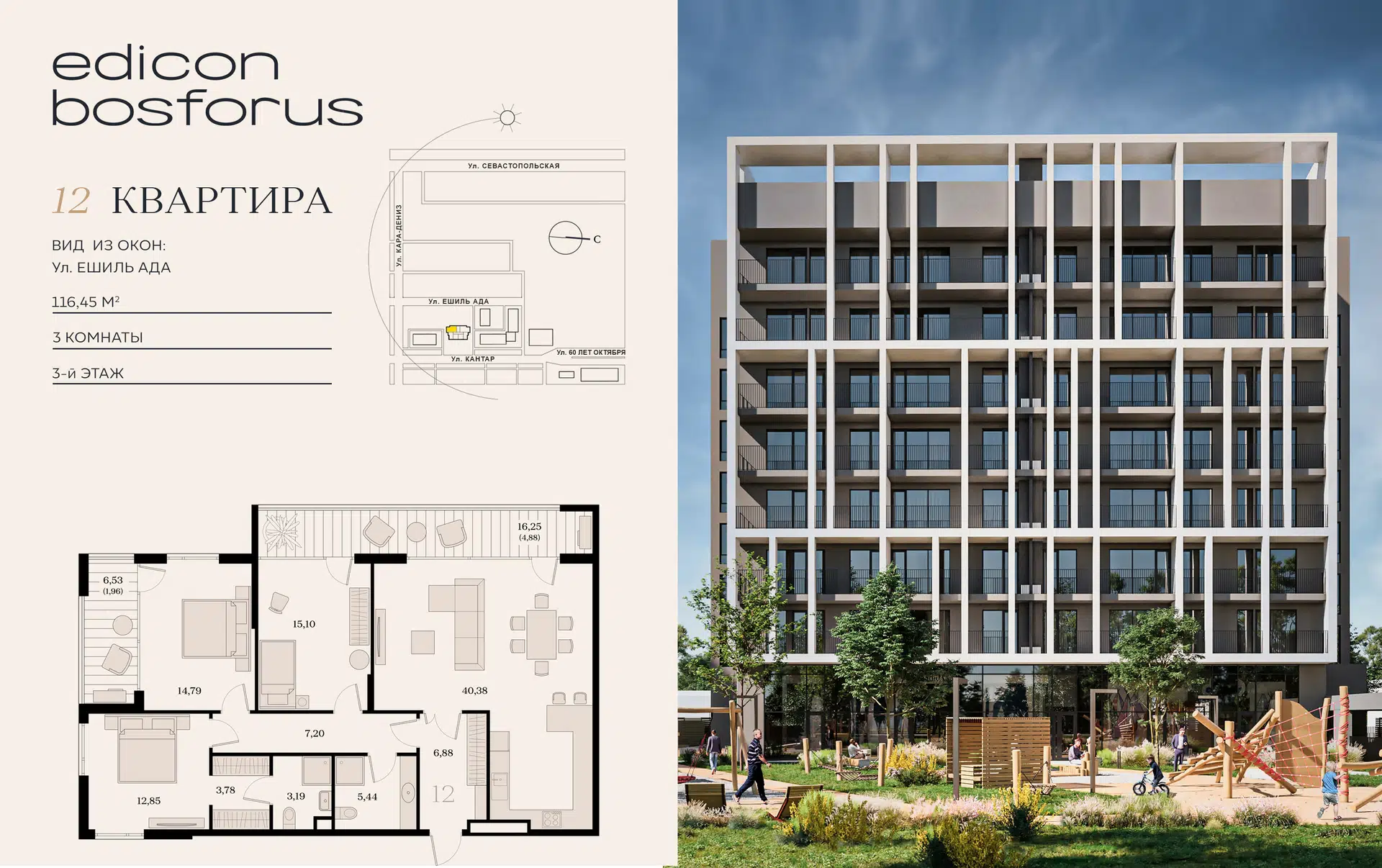 Жилой комплекс Эдикон Босфорус — это новый восьмиэтажный клубный дом, расположенный по адресу г. Симферополь, ул. Ешиль-Ада, 6. Проект отличается современной архитектурой с графичными фасадами, витражным остеклением и практичными балконами-террасами. Комплекс предлагает 42 квартиры площадью от 48 до 116 квадратных метров в черновой отделке, с возможностью заказа ремонта «под ключ» по дизайнерскому проекту.