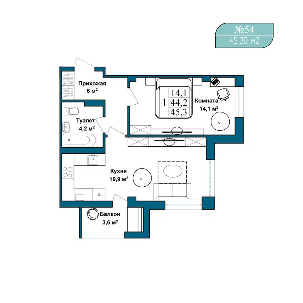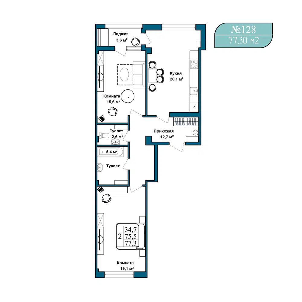 45.3 - 77.3 м²
