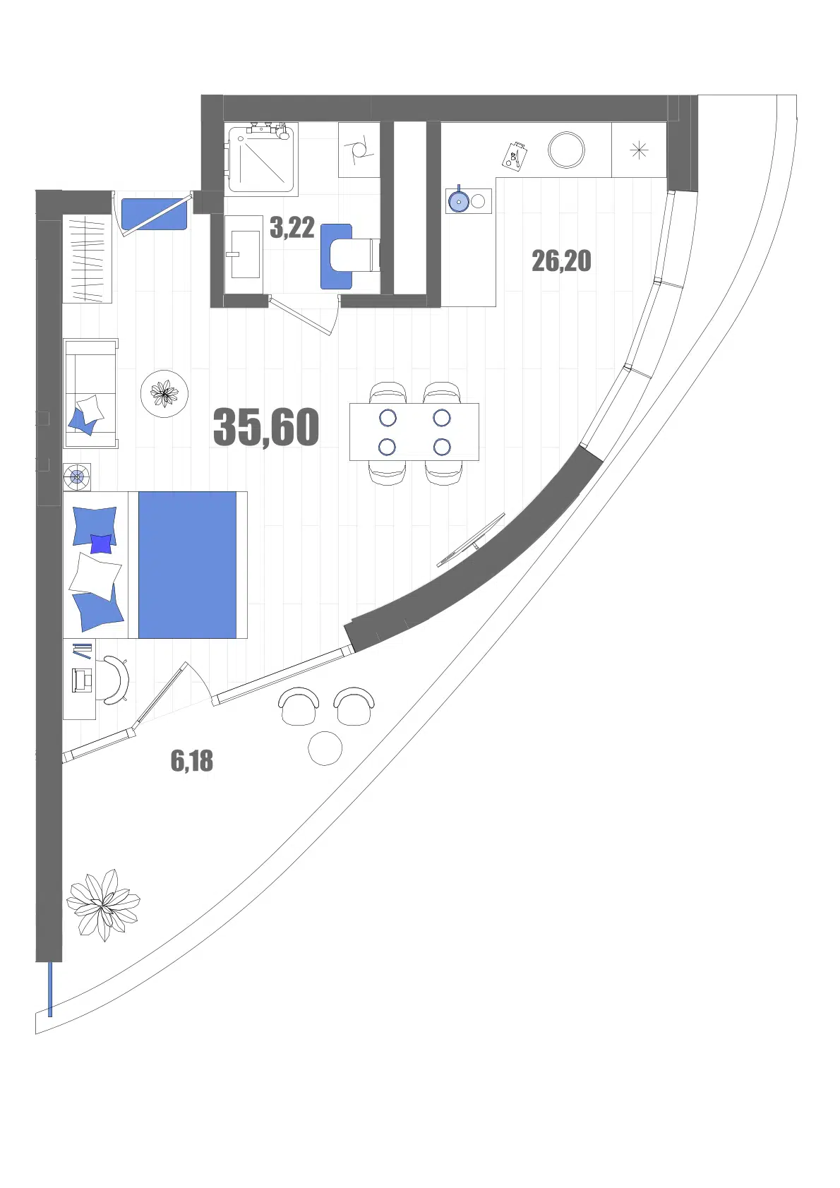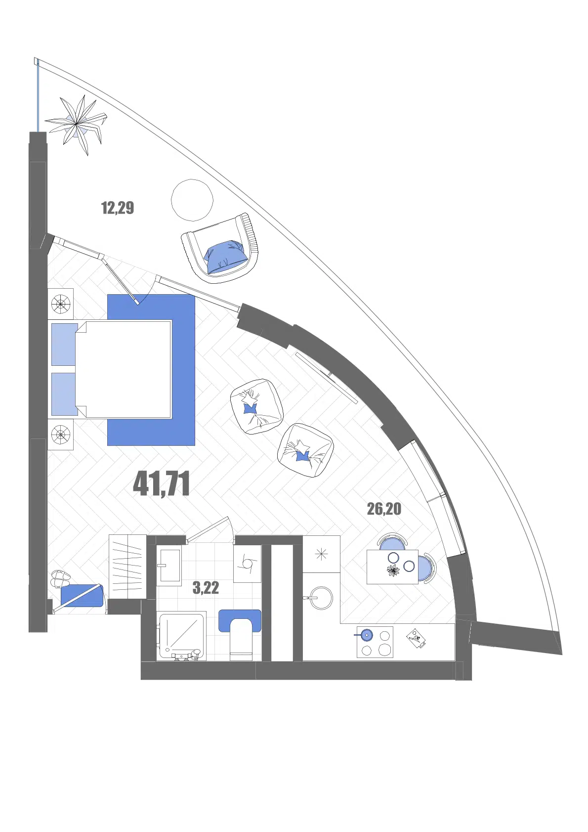 Проект представлен 24-этажными зданиями элитного класса. В продаже доступны апартаменты различных форматов — от студий от 30,23 м² до просторных двухкомнатных лотов площадью от 102 м². Все помещения сдаются с предчистовой отделкой с возможностью индивидуального выбора дизайна. Комплекс отличает высокий уровень безопасности с системой контроля доступа и круглосуточным видеонаблюдением.