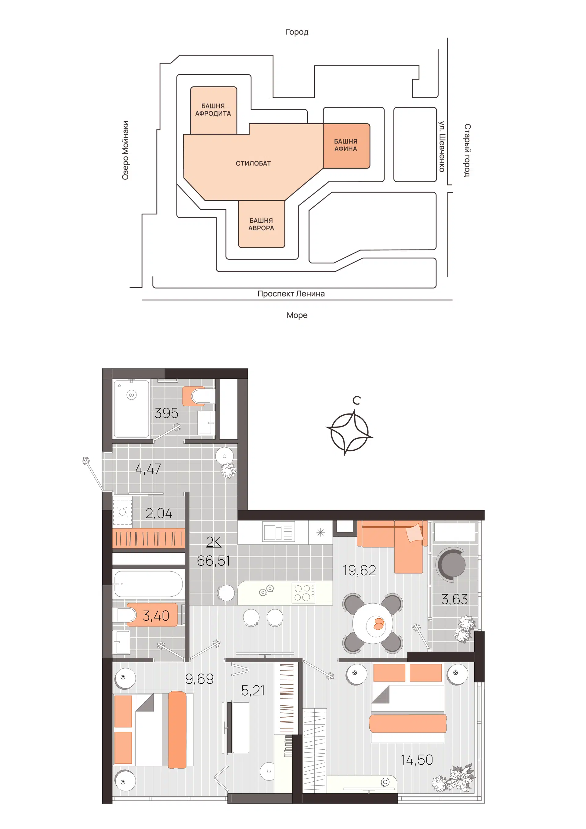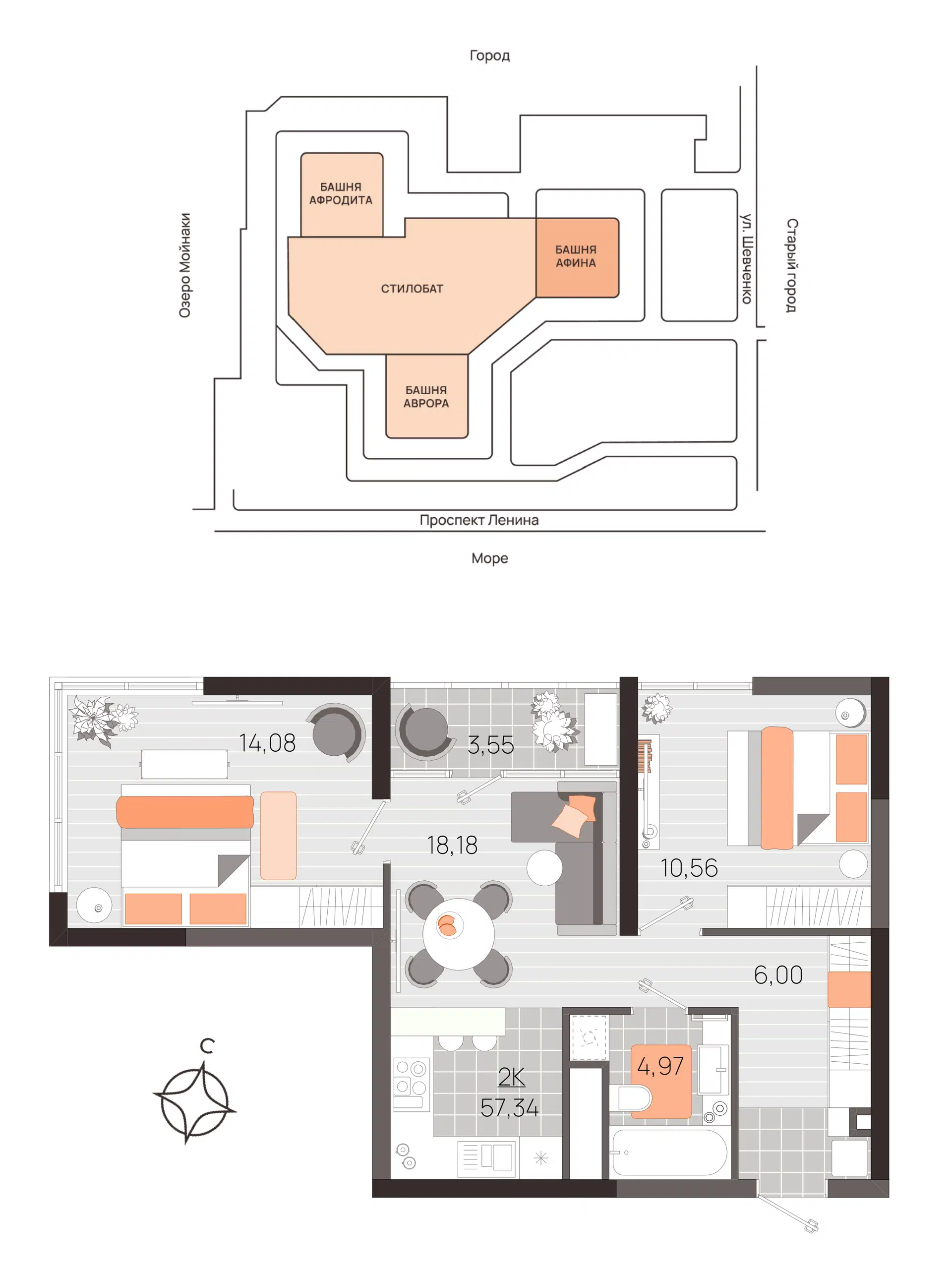 Проект предлагает более 20 типов планировок квартир — от студий до видовых резиденций с террасами. Инфраструктура включает собственный торгово-развлекательный центр площадью свыше 3500 м², культурный центр с концертным залом, современную спортивную зону с теннисным кортом и зонами для йоги, а также озеленённые дворы и частную эксплуатируемую кровлю. Подземный паркинг оснащён зарядками для электромобилей и автомойкой. Уровень сервиса обеспечивают консьерж-служба, круглосуточный room-service, valet-паркинг и доставка всего необходимого прямо к двери.