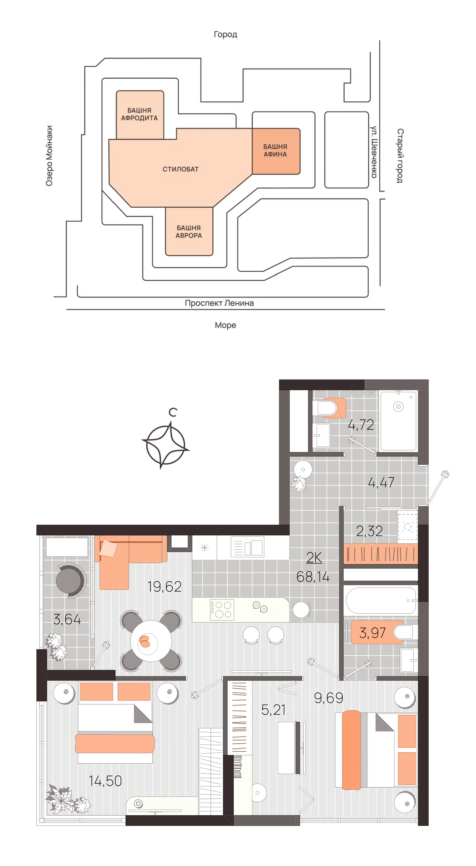 Жилой комплекс «Проспект 82» — это проект бизнес-класса, расположенный в самом центре Евпатории. Комплекс состоит из трёх башен с панорамными окнами и высокими потолками и позиционируется как объект с сервисом на уровне пятизвёздочного отеля. Расположение в историческом и деловом центре города обеспечивает шаговую доступность к школам, детским садам, паркам и больницам, а до песчаного побережья Чёрного моря всего 10 минут пути.