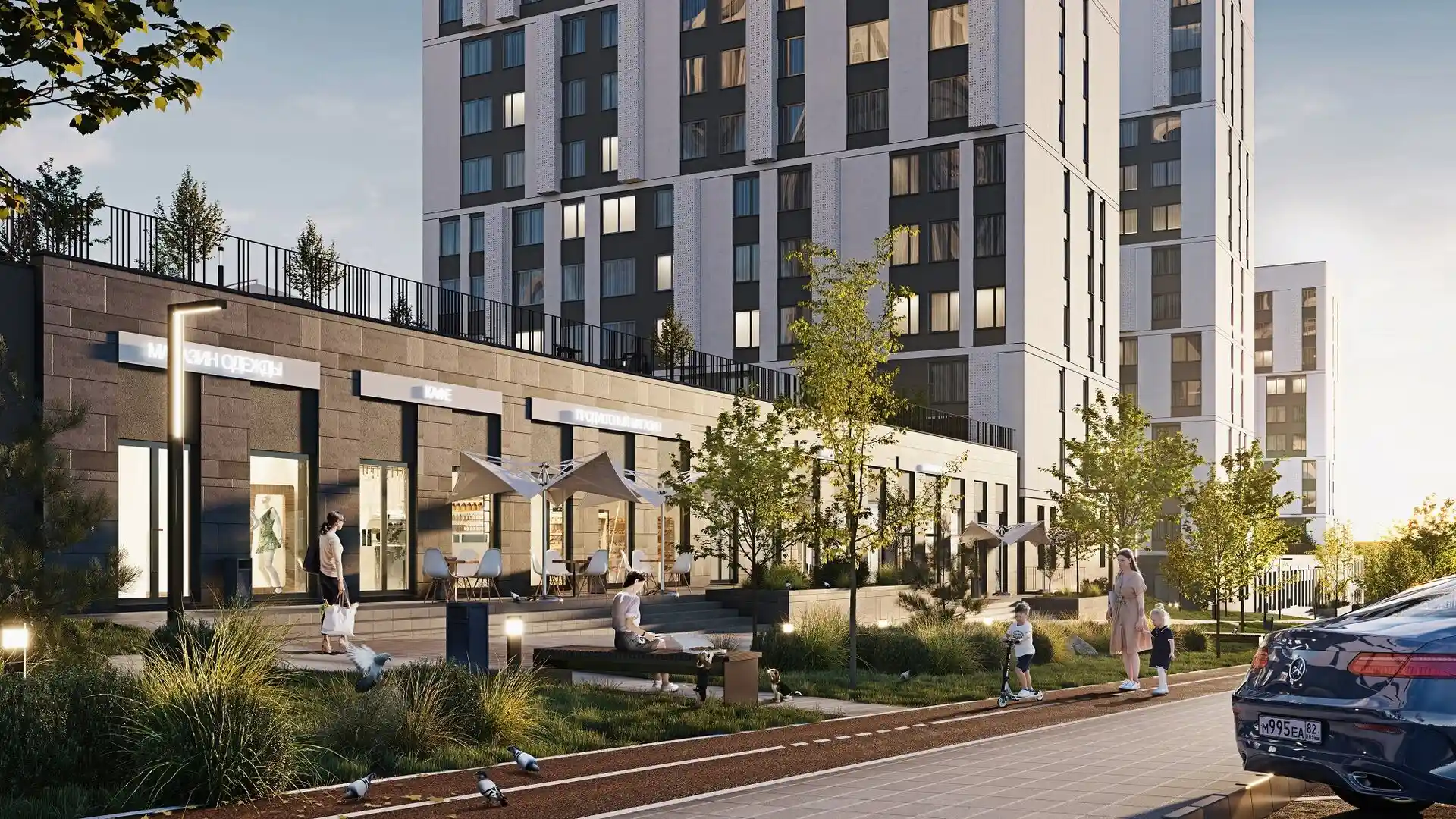 Комплекс отличается продуманной инфраструктурой и благоустройством. На его территории расположены авторские общественные пространства с арт-объектами, богатое озеленение, уникальные детские площадки для физического развития, эксплуатируемая крыша с зонами для спорта и отдыха, а также собственный стрит-ритейл. Для автомобилей жителей предусмотрен многоуровневый паркинг. Квартиры предлагают эргономичные планировки без проходных комнат, с гардеробными, патио и застеклёнными лоджиями. Большим преимуществом является локация: в шаговой доступности находятся детский сад и школа, а также ТРЦ «Южная галерея», при этом квартал имеет прямой выезд на объездную дорогу Симферополя.