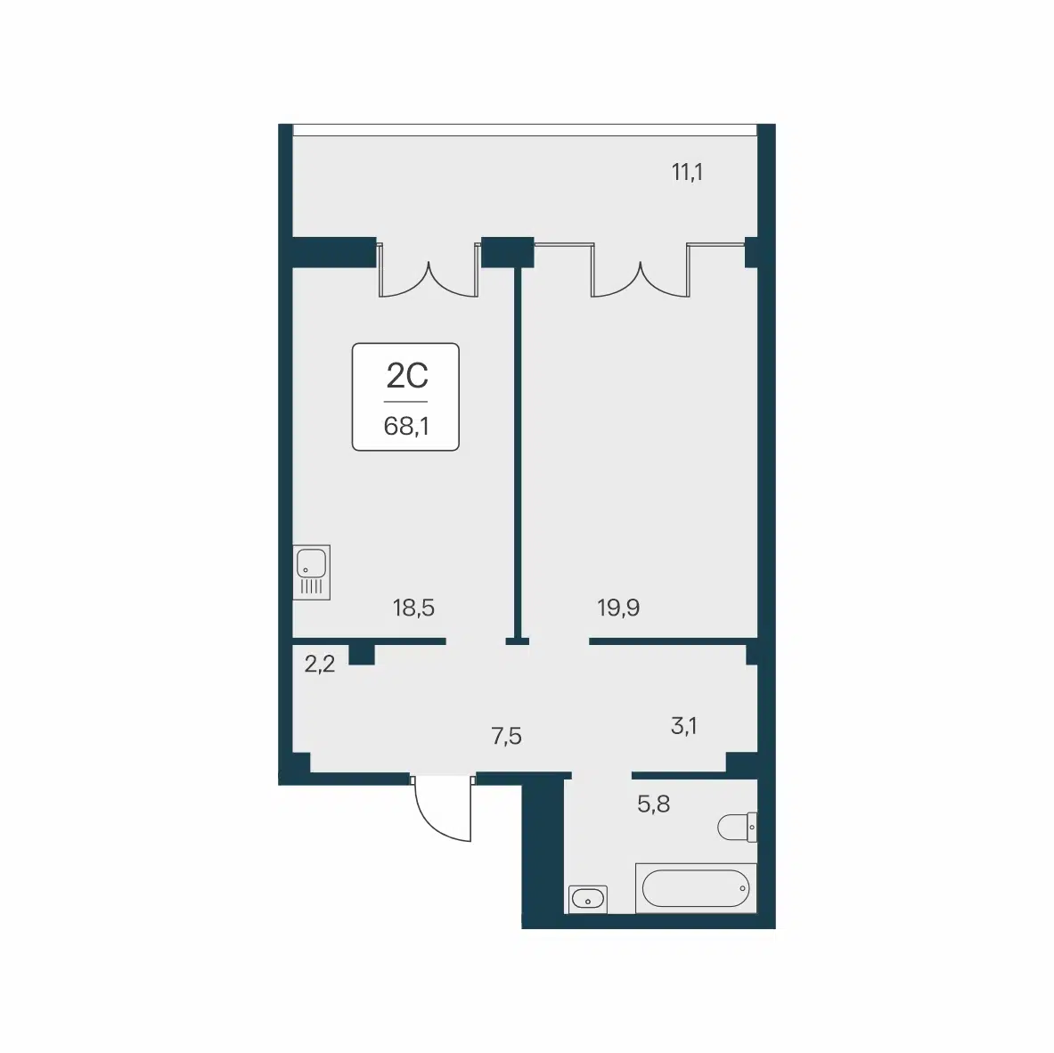 Квартиры сдаются с отделкой White Box, которая включает теплые полы, готовую разводку инженерных сетей, металлопластиковые окна и оштукатуренные стены, что дает возможность для индивидуального дизайна.