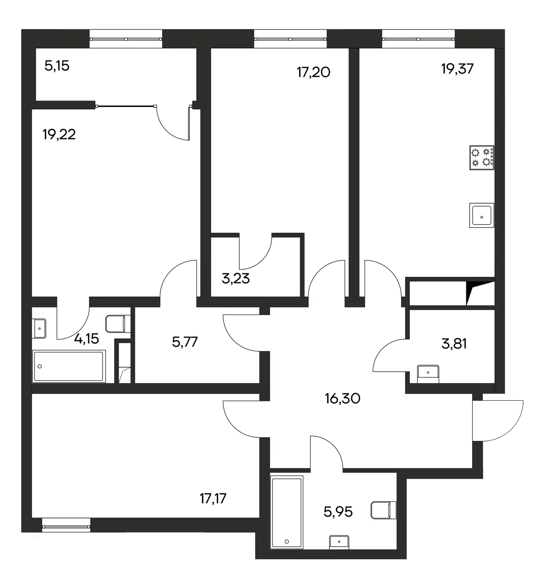 3-комнатная, 113.52 м²