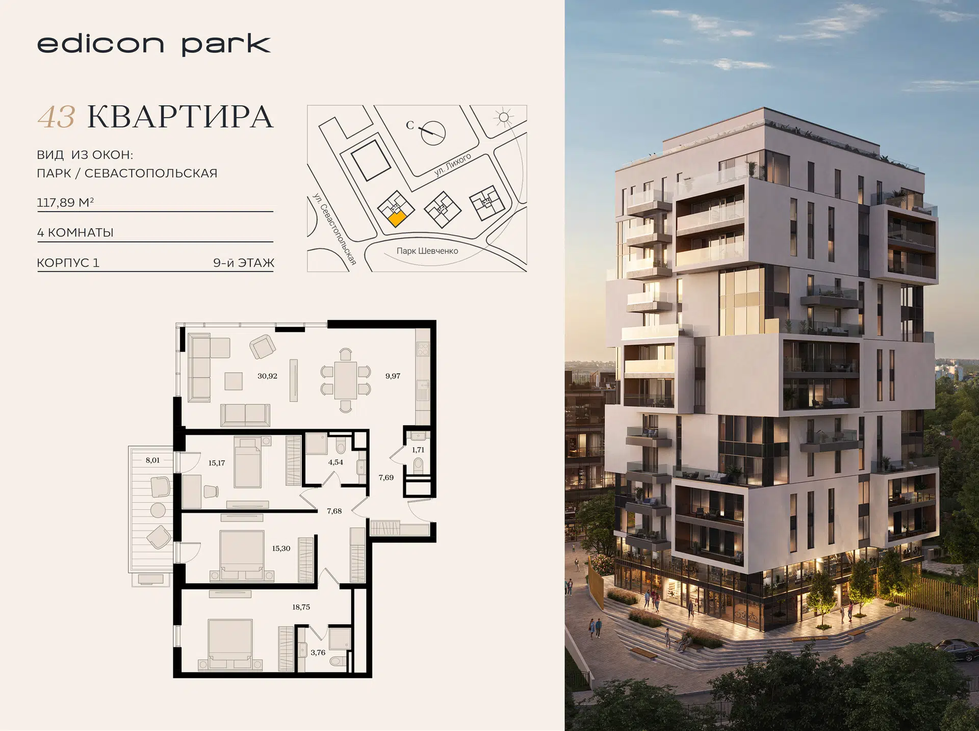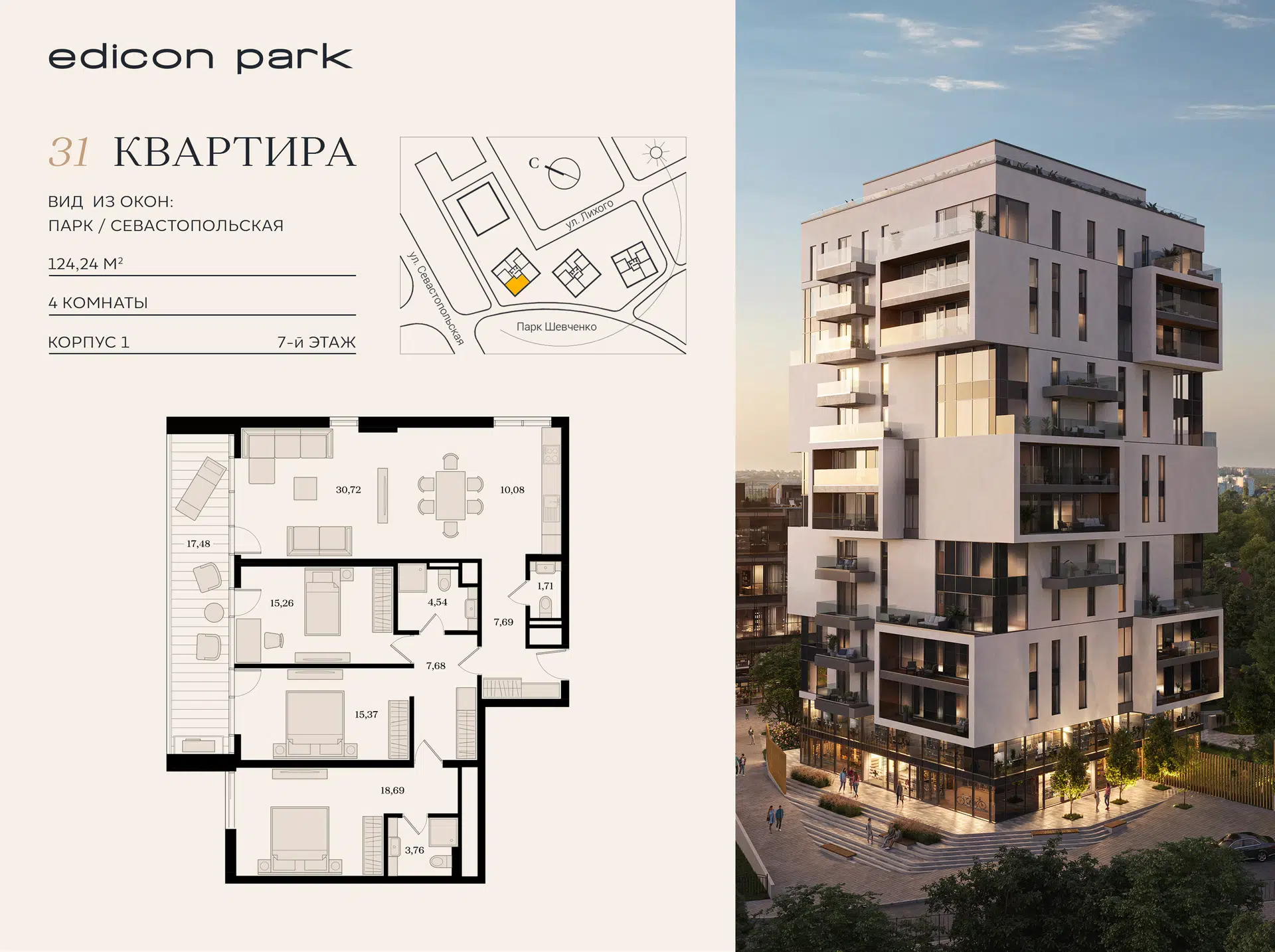 4-комнатная квартира, 125.09 м², 2 эт.