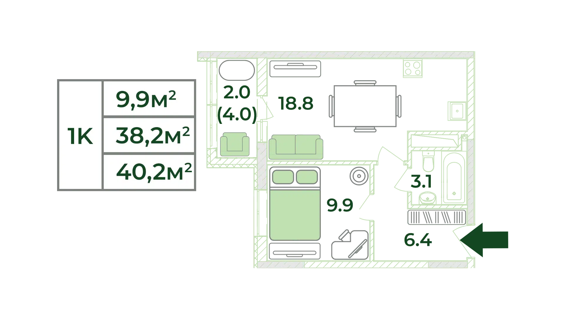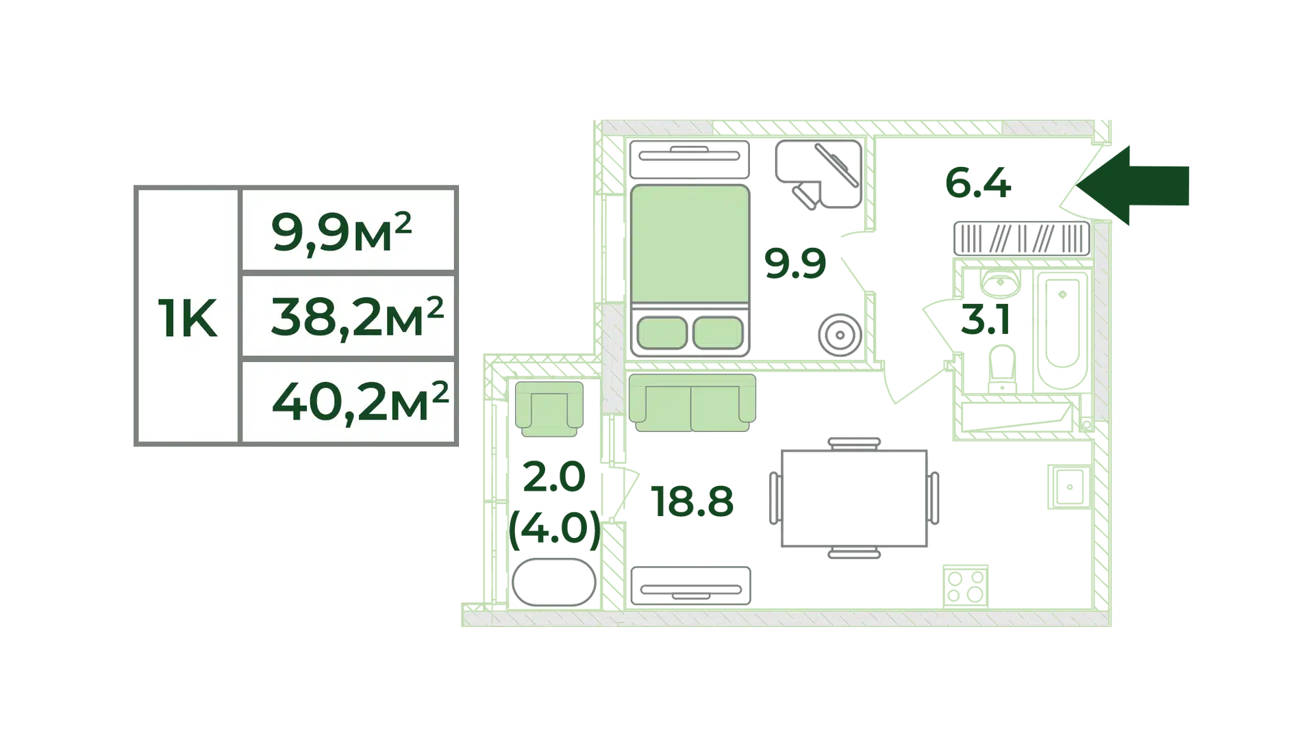 1-комн. квартира, 40.20 м²9 580 142 ₽