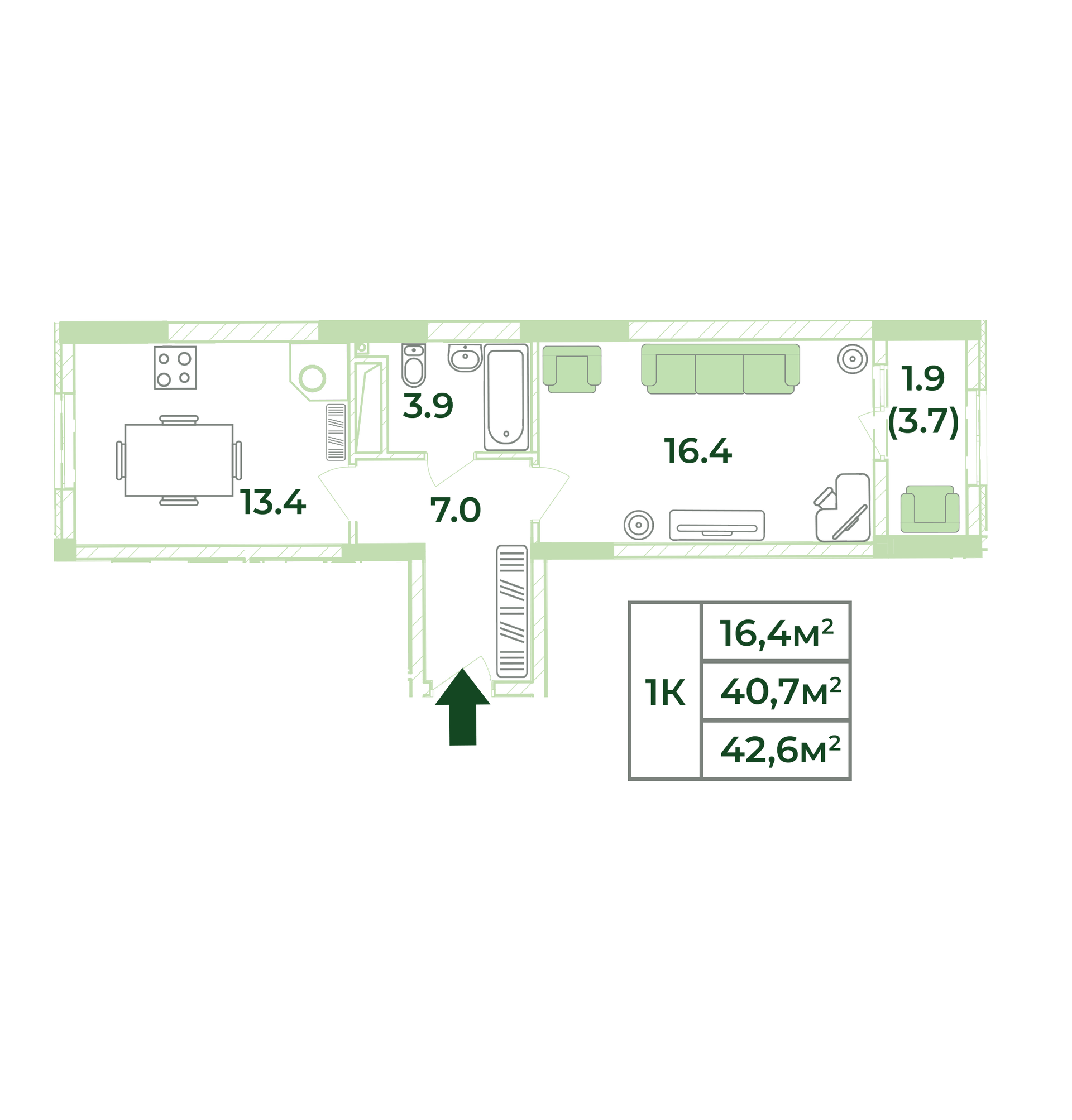 1-комн. квартира, 42.60 м²10 152 091 ₽