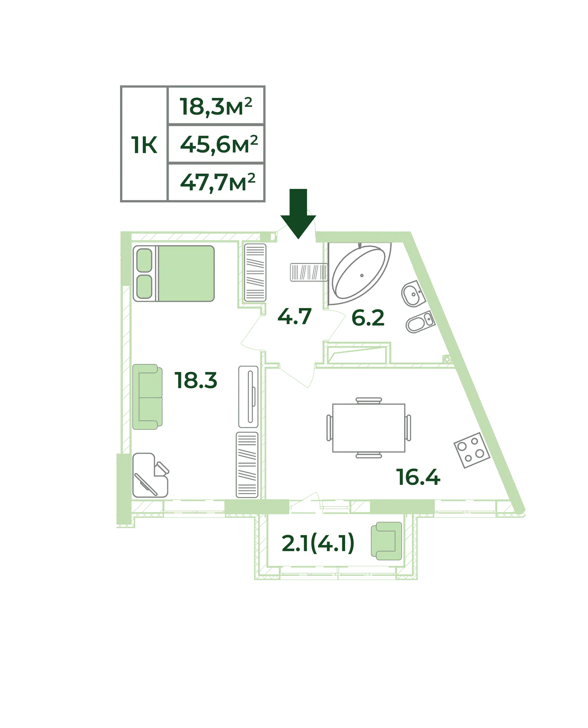 1-комн. квартира, 42.60 м²10 152 091 ₽