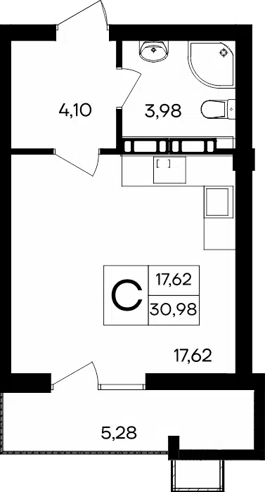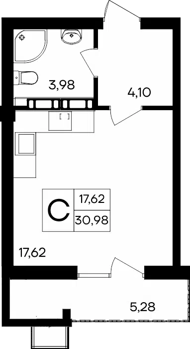 Студия, 29.60 м²