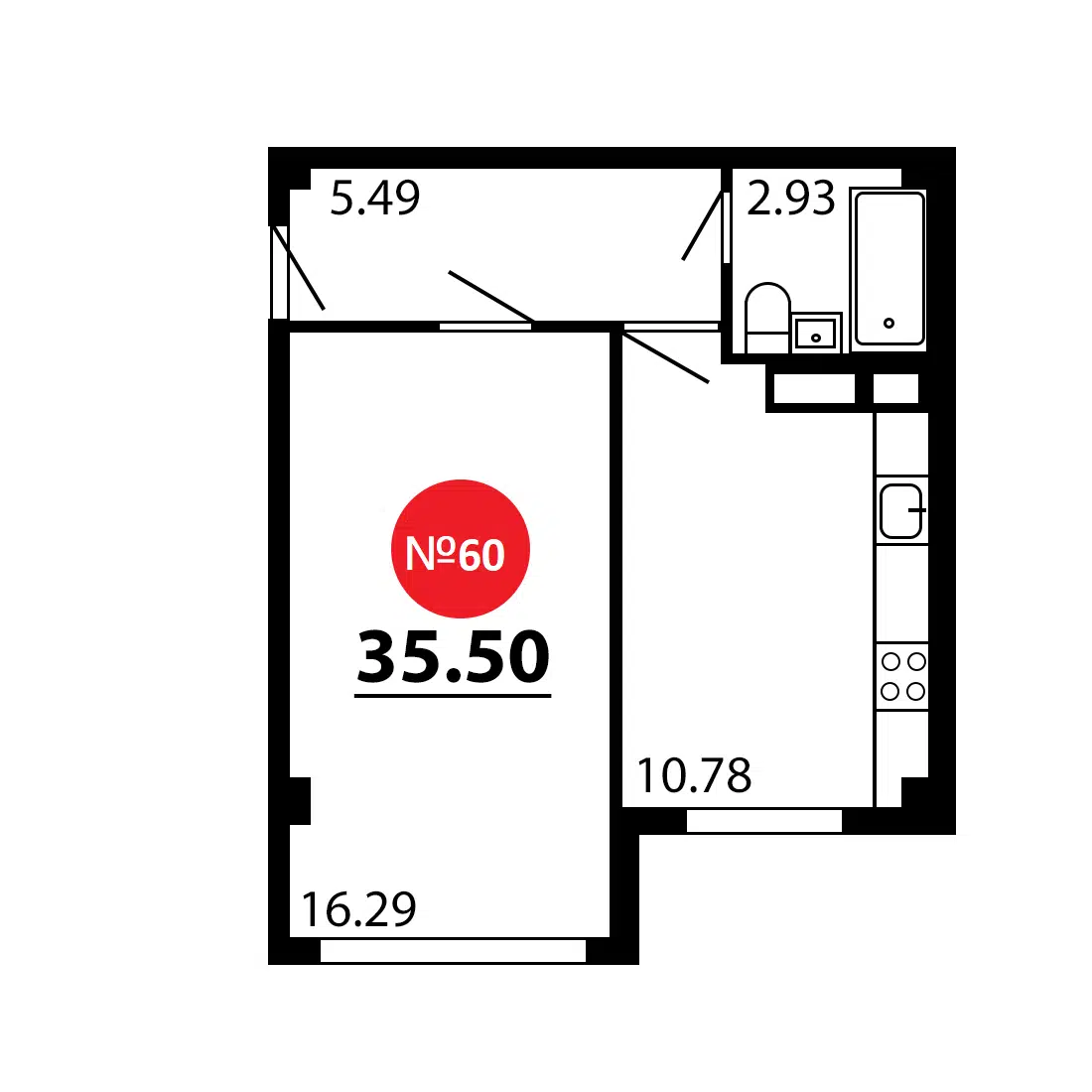 1-комн. квартира, 35.29 м²
