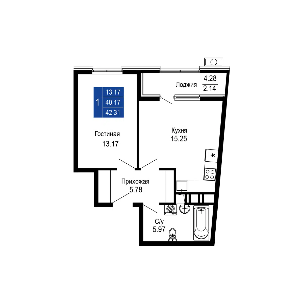 1-комнатная квартира, 39.20 м², 4 эт.