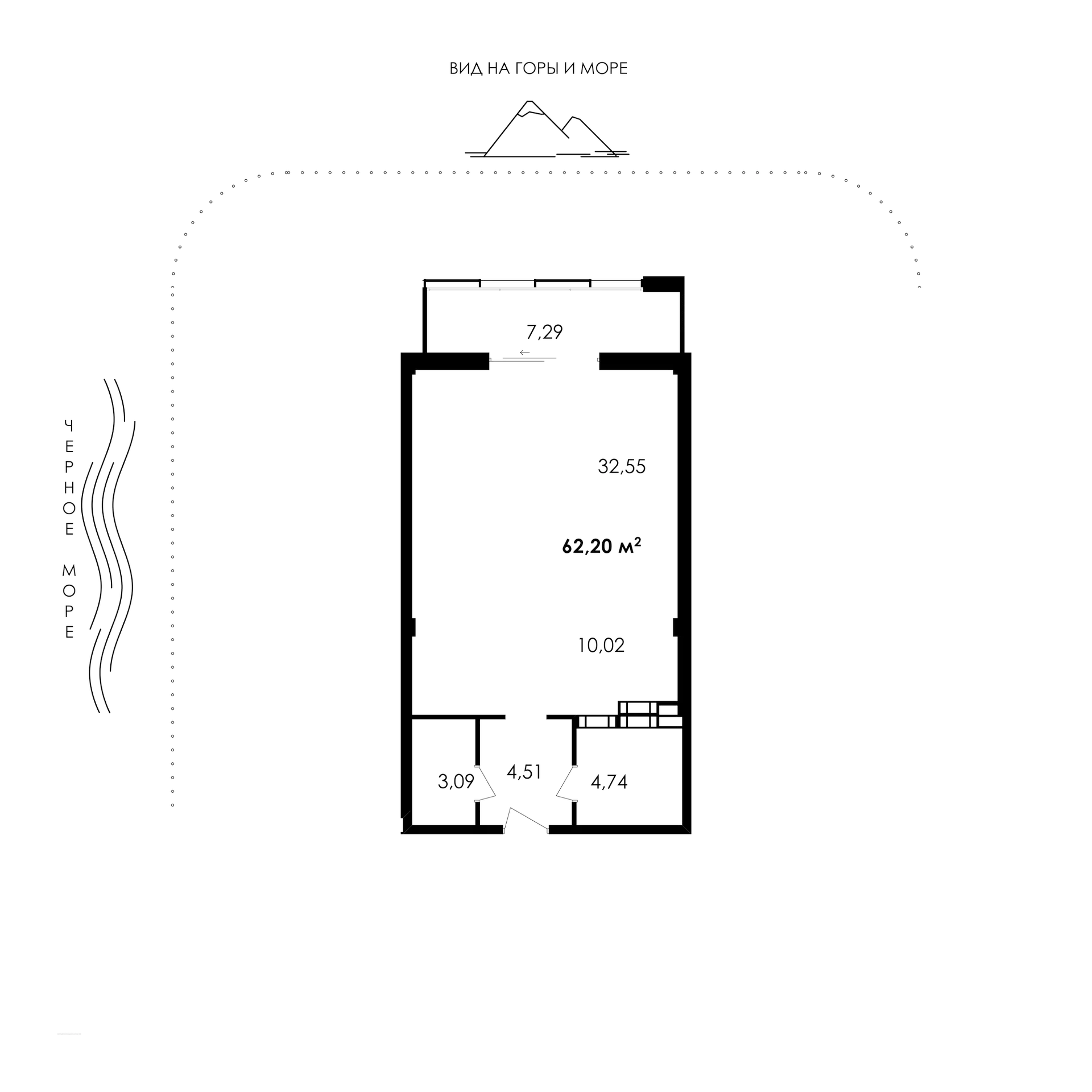 1-комнатная квартира, 62.57 м², 11 эт.