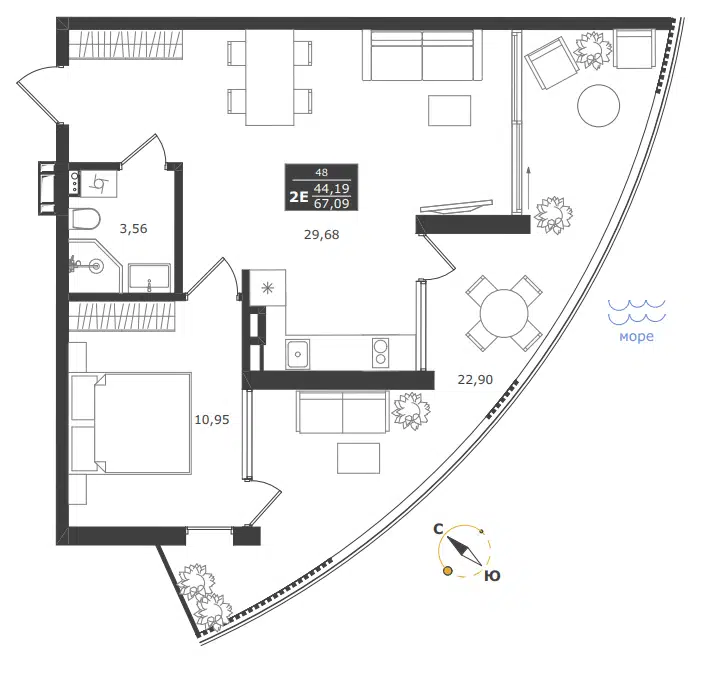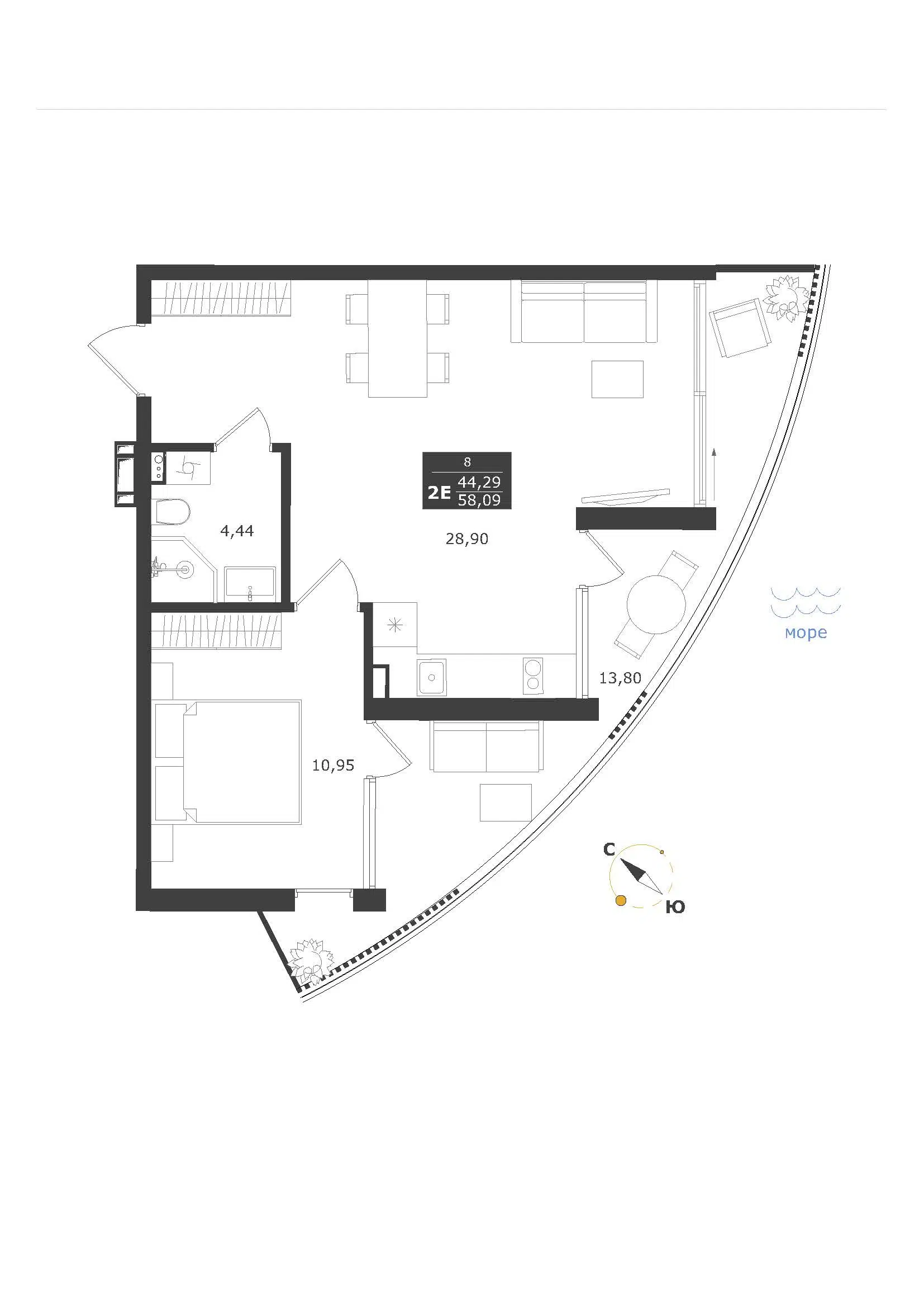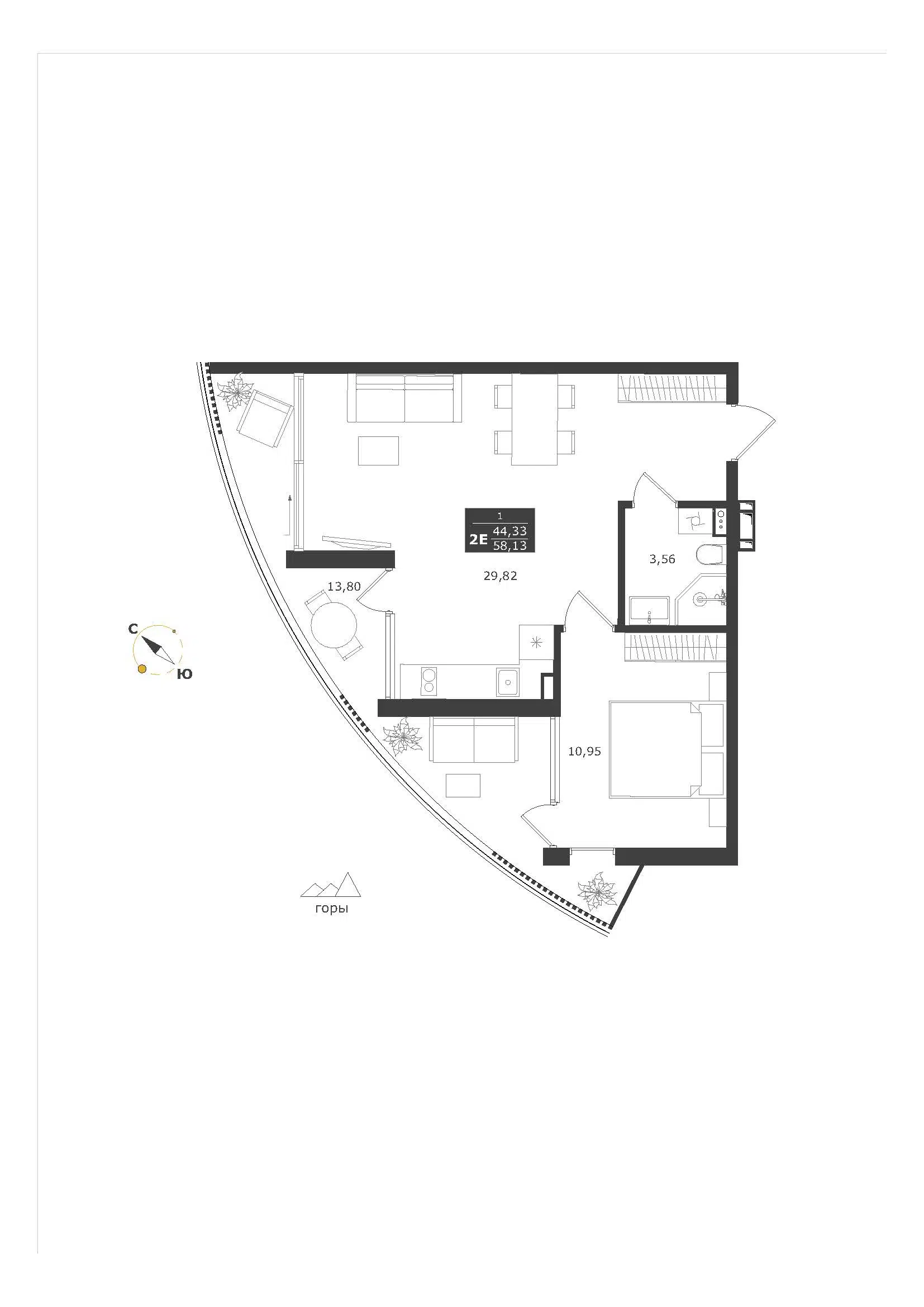 2-комнатная квартира, 57.98 м², 10 эт.