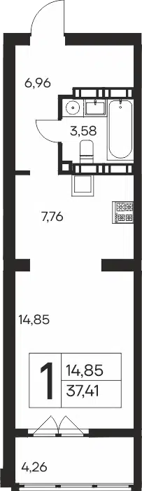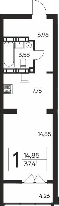1-комнатная квартира, 36.16 м², 16 эт.