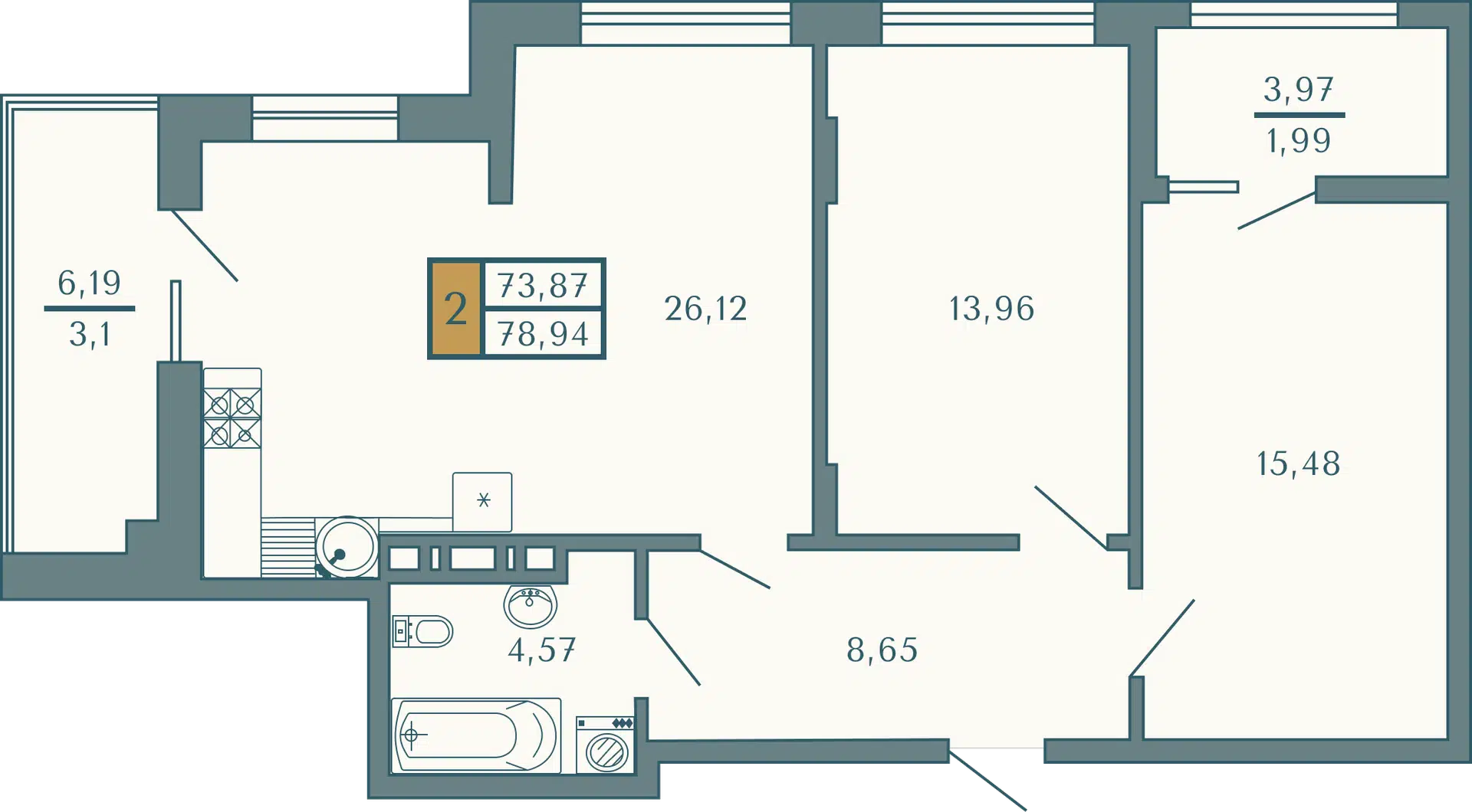 2-комнатная квартира, 75.28 м², 5 эт.