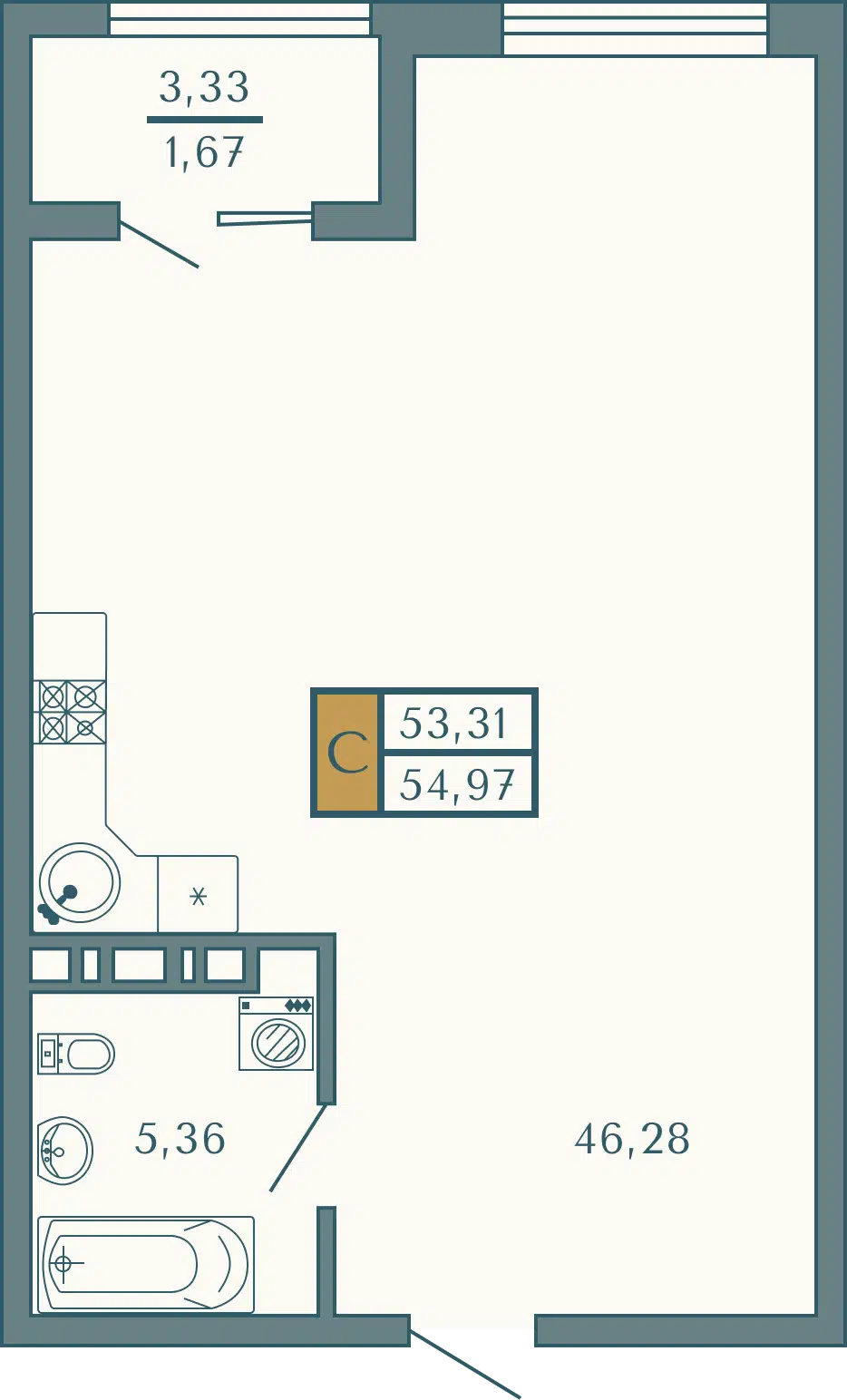 Студия, 54.94 м², 8 эт.