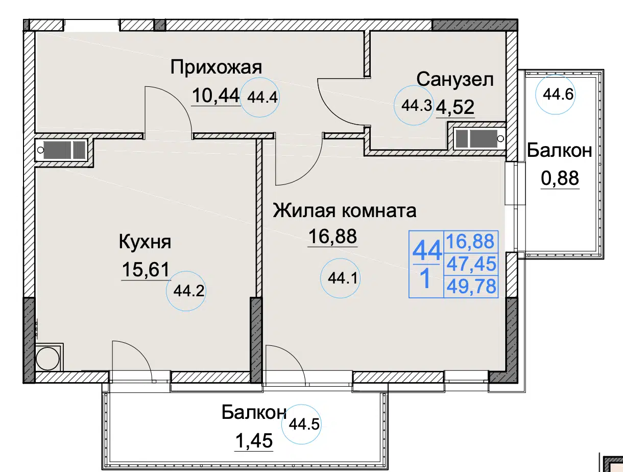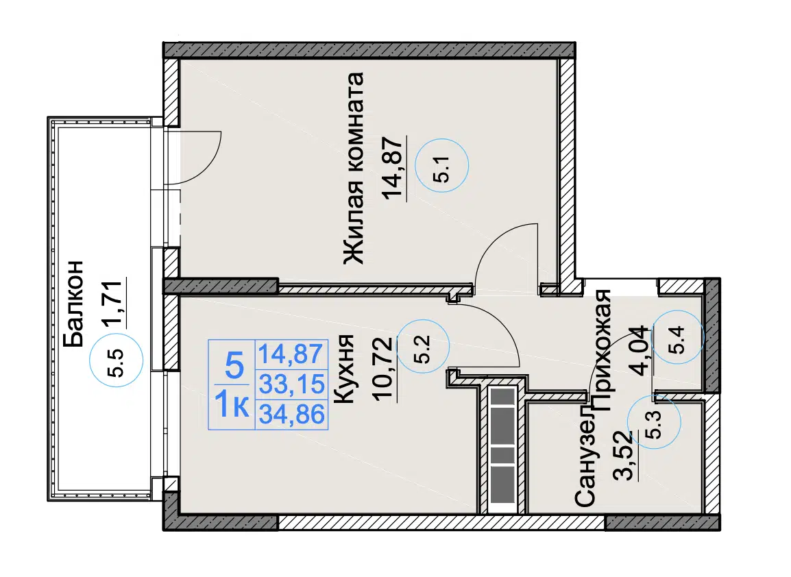 1-комнатная, 33.67 м²