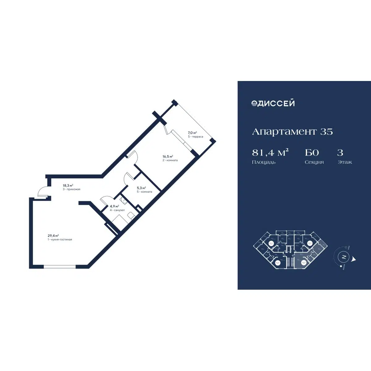 2-комнатная квартира, 78.70 м², 2 эт.