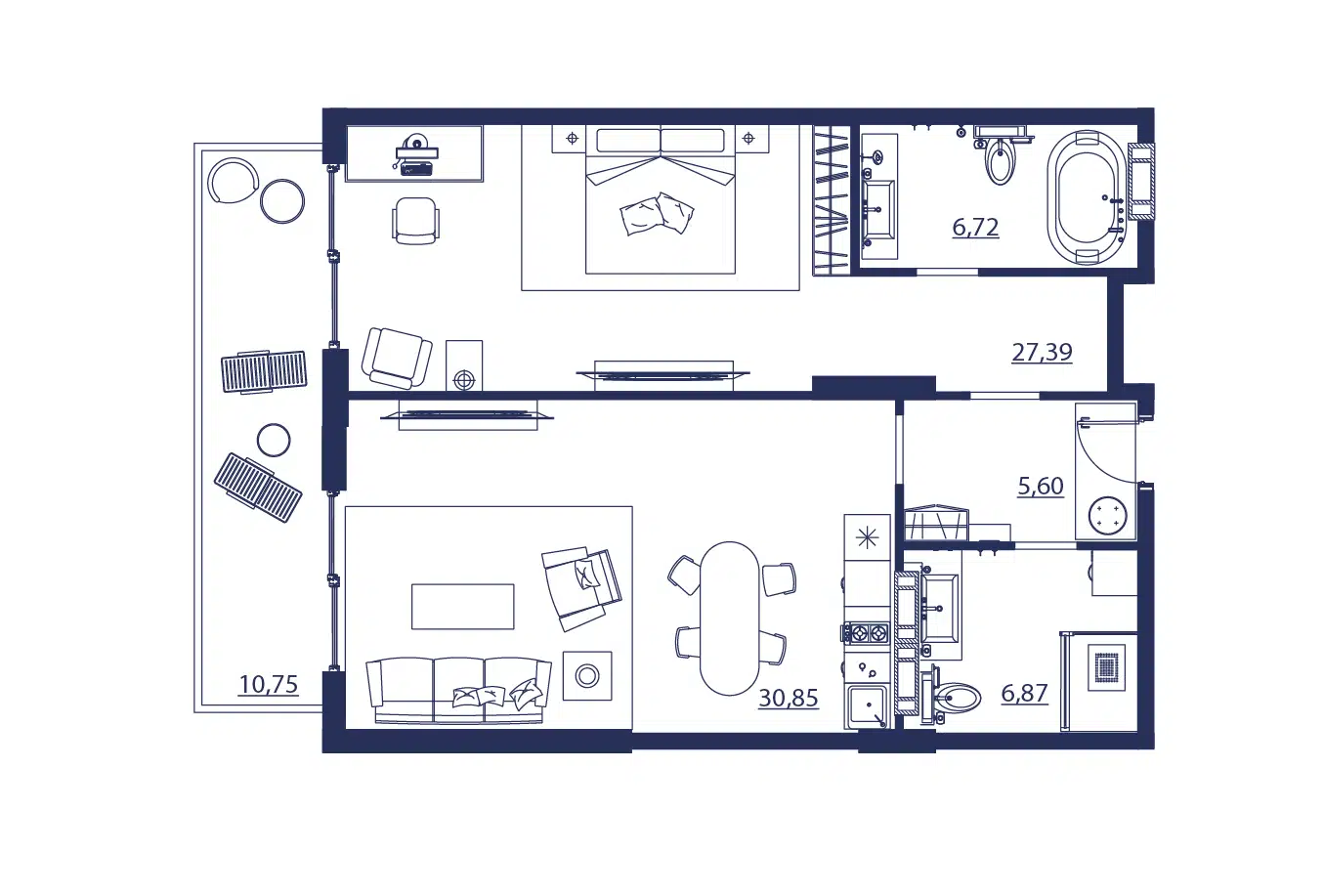 2-комнатная квартира, 85.46 м², 1 эт.