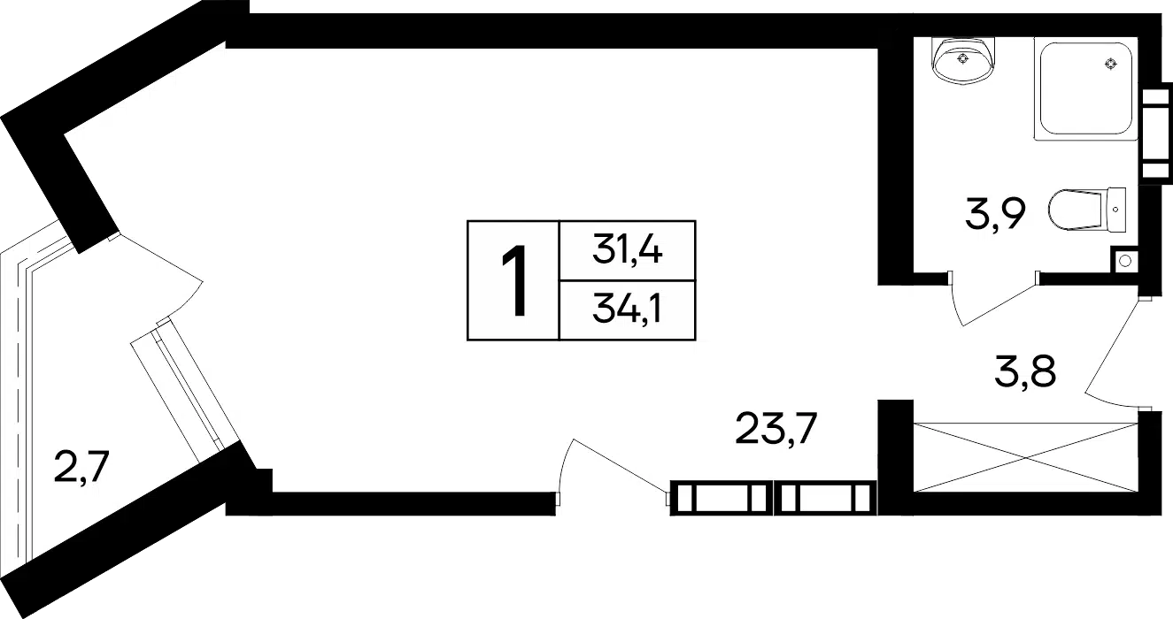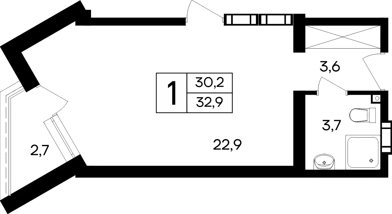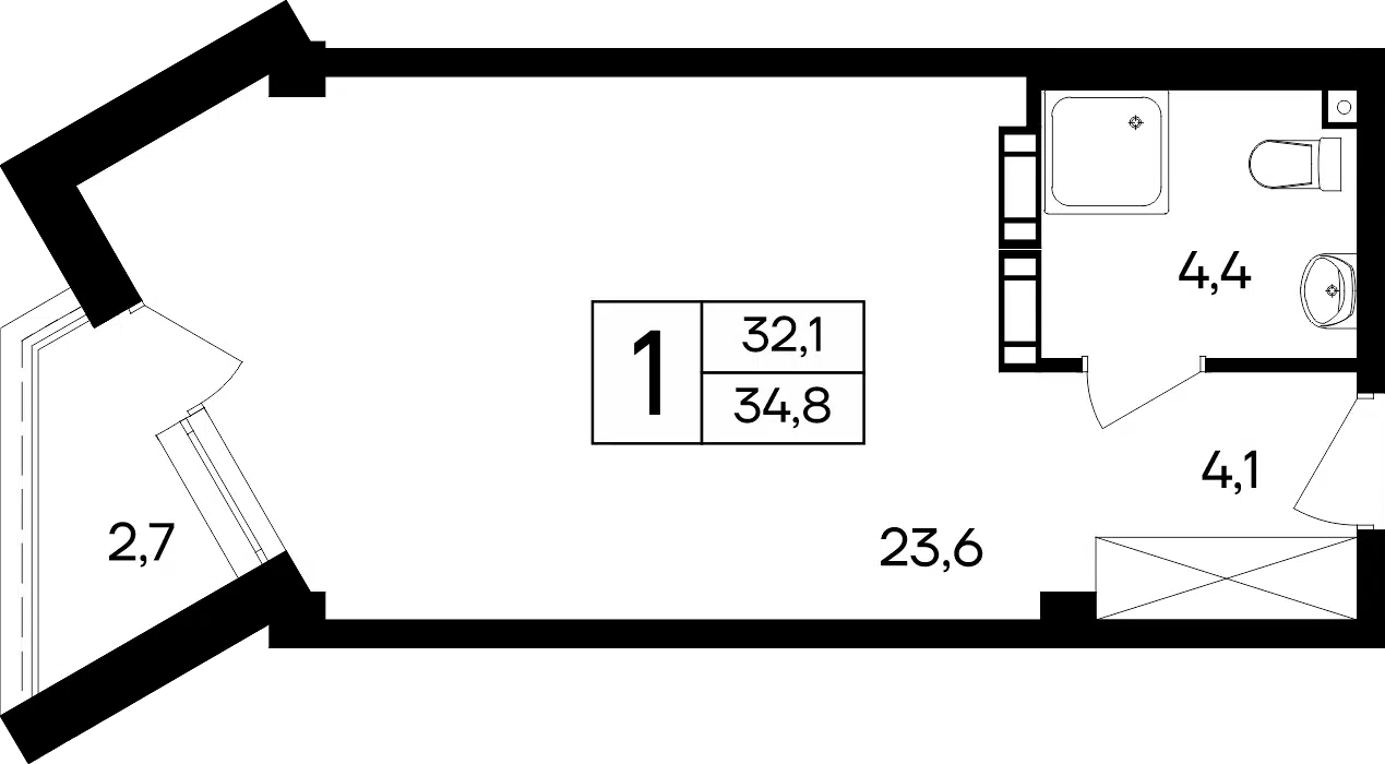 1-комнатная квартира, 34.30 м², 6 эт.