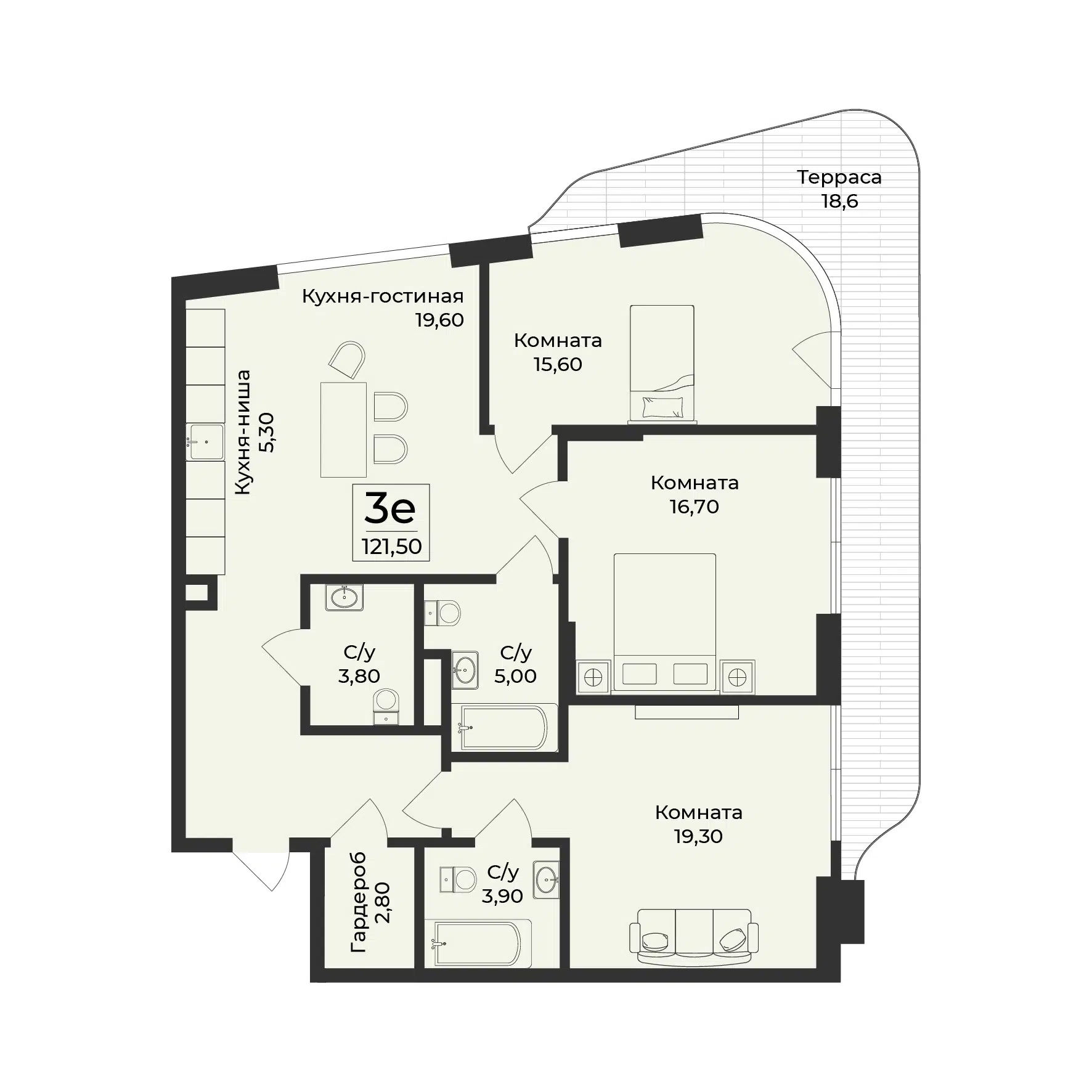 4-комнатная квартира, 97.70 м², 6 эт.