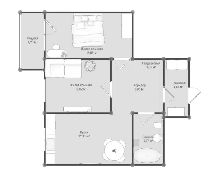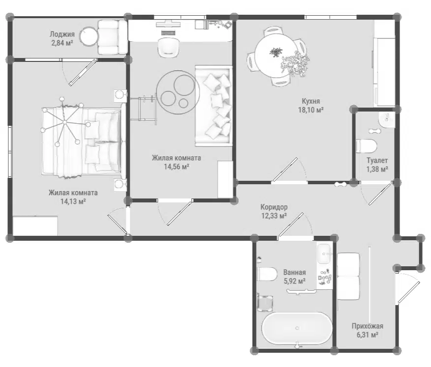 2-комнатная, 72.19 м²