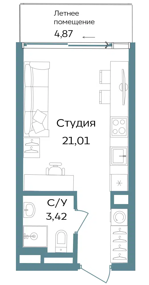 Студия, 29.30 м², 2 эт.
