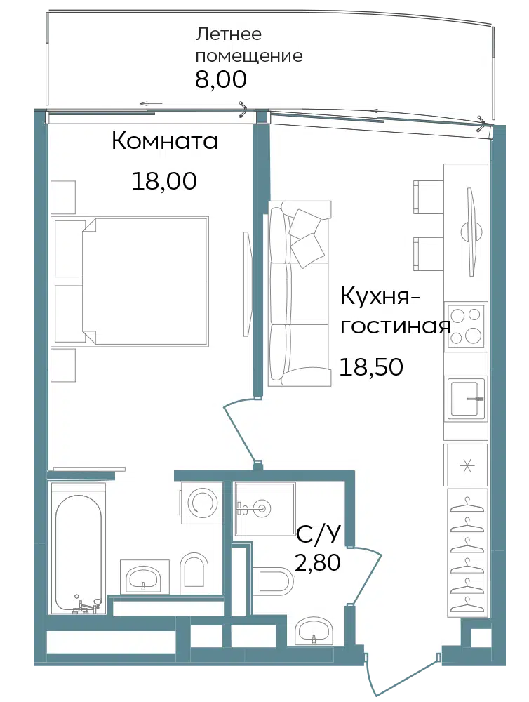 1-комнатная квартира, 47.96 м², 5 эт.